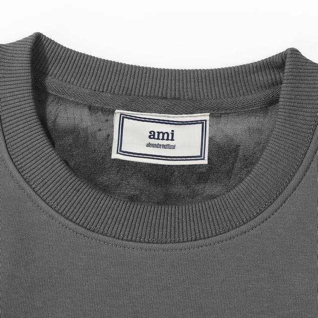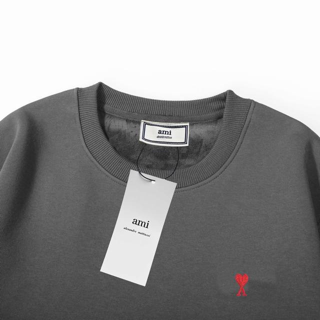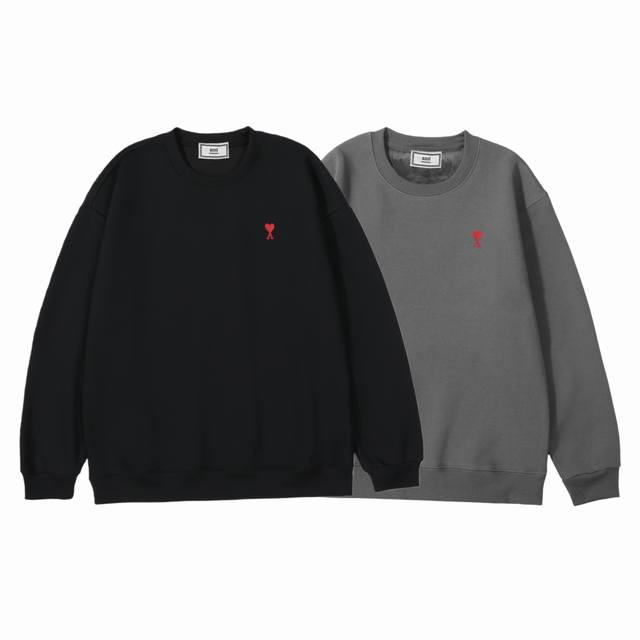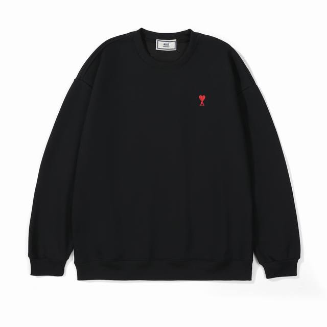 Ami Red Heart Mink Fleece Crew Neck Sweatshirt. Complete with main label and accessories after washing. Made from high-grammage mink fleece fabric, windproof and warm, specially dyed in the same vat, thickened 32-count double-ply 1