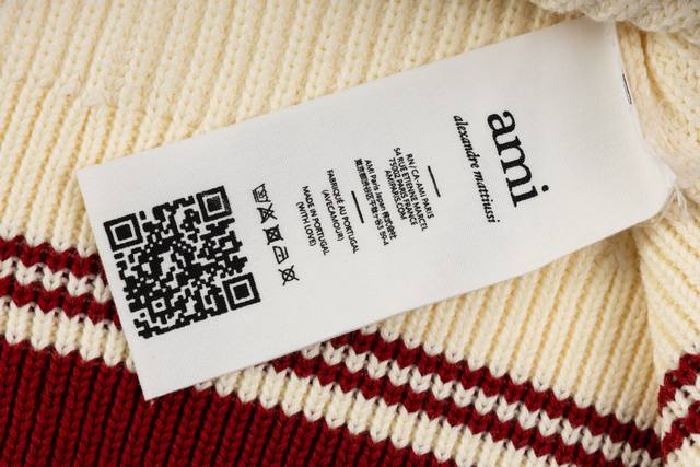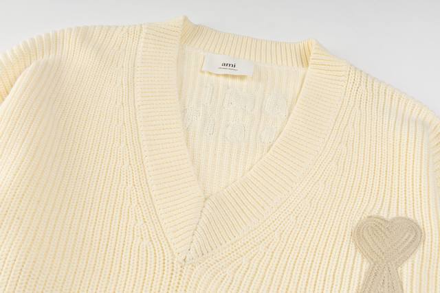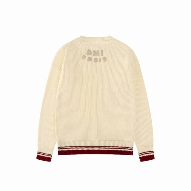 Ami24Fw Red-edged Heart Letter V-neck Knit Sweater