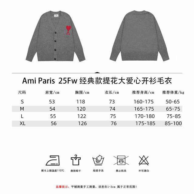 Amiparis 25Fw Classic jacquard cardigan sweater with a large heart. Net weight: 780g. Strongest thickness on the market. Returns accepted if weight is insufficient.