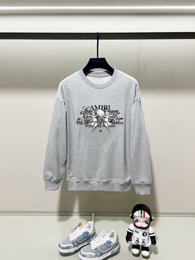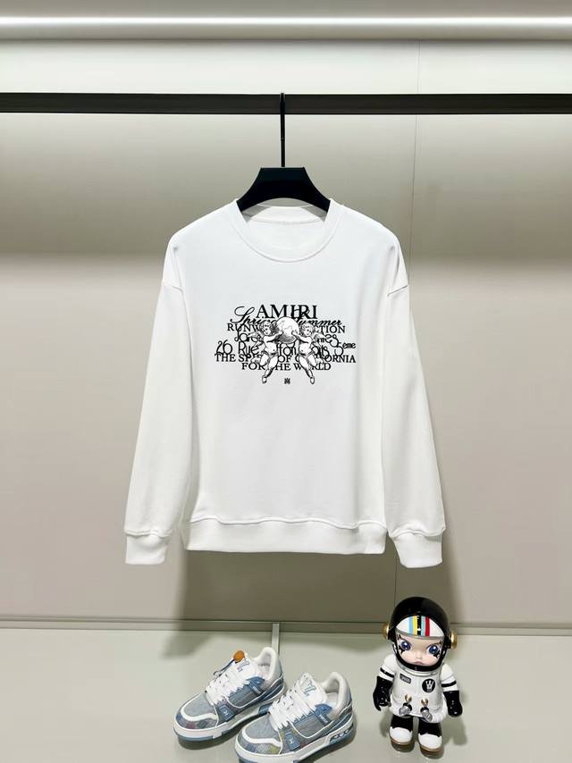 Amiri, 2025 Autumn/Winter New Crew Neck Long Sleeve Sweatshirt. Features a precision print on the chest and is made from premium double-ply cotton twill fabric. The 420g/m? high-weight fabric ensures a crisp and substantial fit, while providing a luxurious and comfortable feel against the skin. Unisex style. Colors: Black, White, Gray. Sizes: XS-XL.