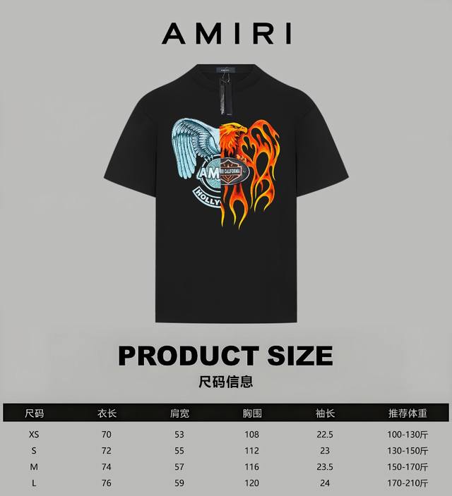 Amiri Official Website Limited Edition Gradient Ice and Fire Graffiti Eagle Logo Letter Print Double Yarn Pure Cotton Short-Sleeve T-Shirt - 280G Double Yarn Pure Cotton Top-Grade Fabric, Soft to the Touch, 100% Pure Cotton, Exclusive Shipment, Custom Dyed Sulfur Black Dust-Free Treatment Fabric - Fabric: 280G Double Yarn Pure Cotton Short-Sleeve T-Shirt, Matching 300G Pure Cotton Ribbed Knit - Exquisitely Upgraded Logo Label, Inspired by 80s Retro - Original Fabric, Official Same Style - Colors: Black, White - Sizes: Xs, S, M, L - Purchased from the original and molded, with a full set of custom accessories; details determine success. Accessories: Original accessories, 1:1, three labels complete, Os drop shoulder fit, unisex, official website quality - No gender distinction, unisex style -