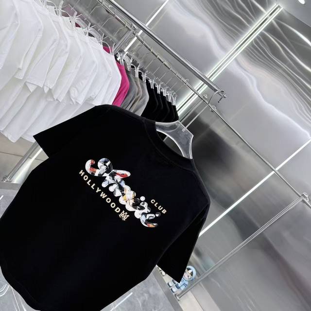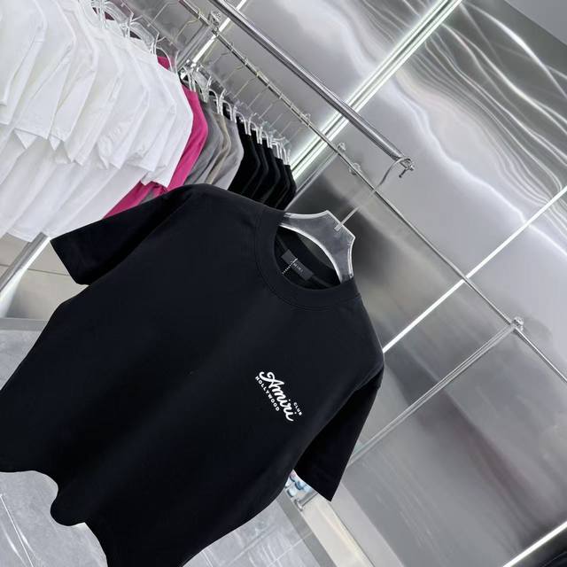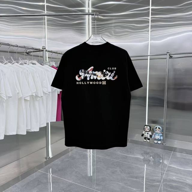 Amlri 2025 Spring/Autumn New Arrival 320g Round Neck Short Sleeve 3D Colored Sil