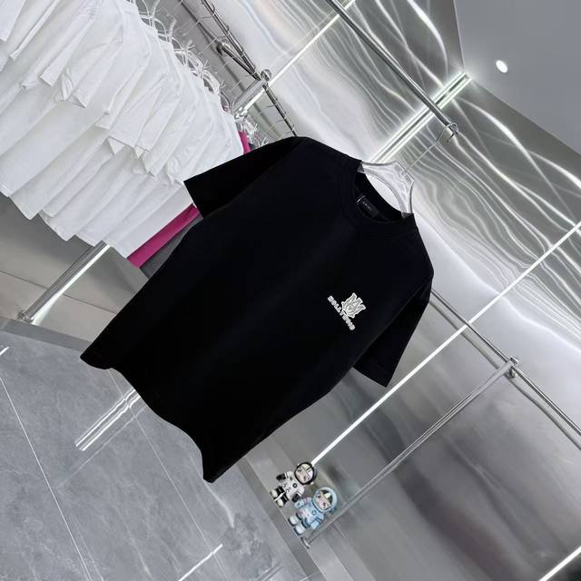 Amlri 2025 Spring/Autumn New Arrival 320g Round Neck Short Sleeve Flocked 3D Silicone Craft Unisex Loose Fit SML XL XXL Five Sizes Available in Black, White, and Gray DDD