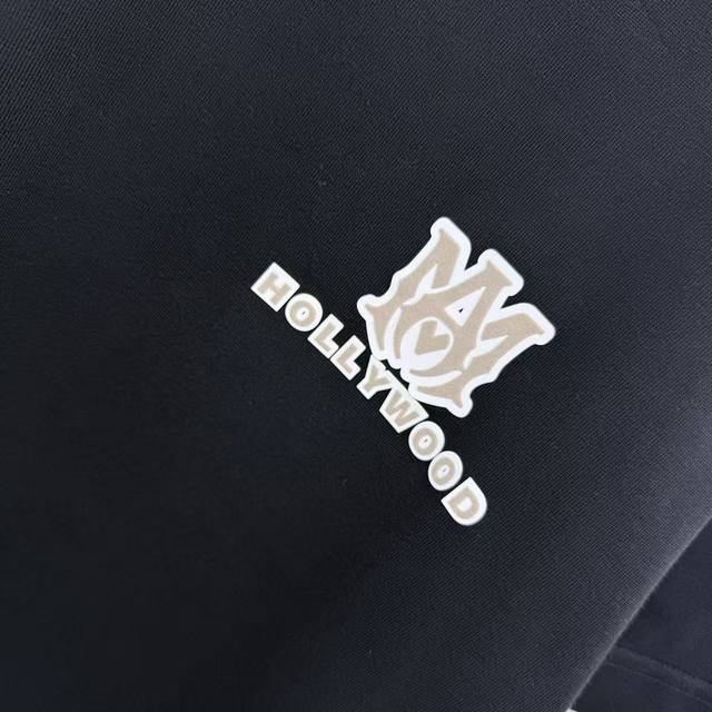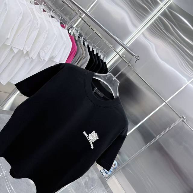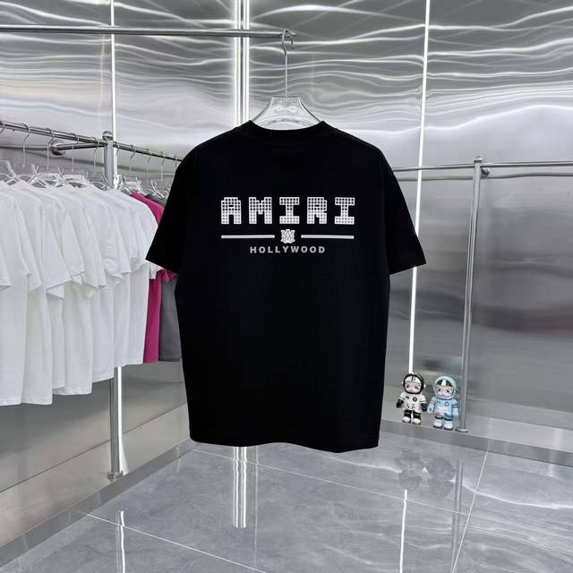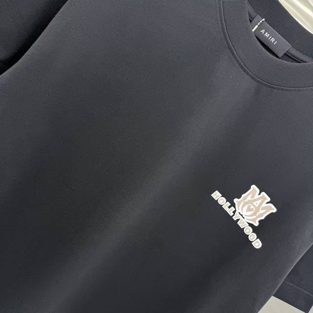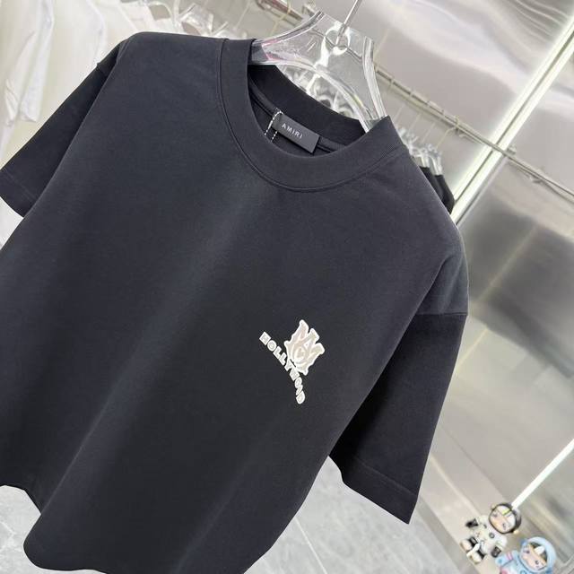 Amlri 2025 Spring/Autumn New Arrival 320g Round Neck Short Sleeve Flocked 3D Sil