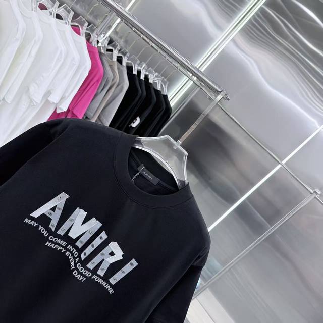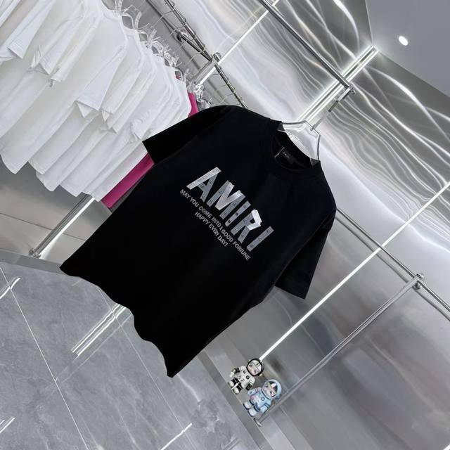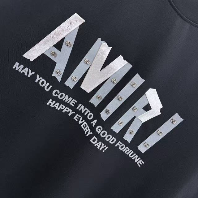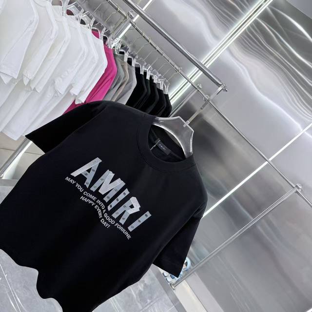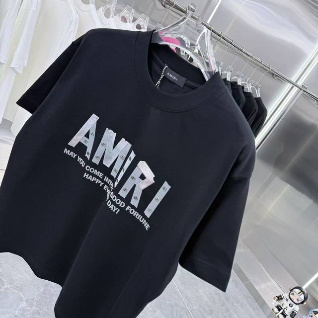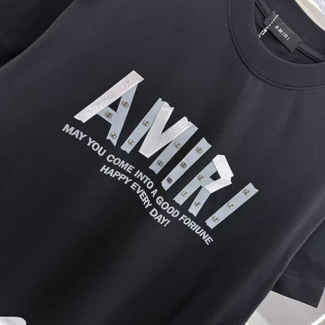 Amlri 2025 Spring/Autumn New Arrival 320g Round Neck Short Sleeve with Metal Riv