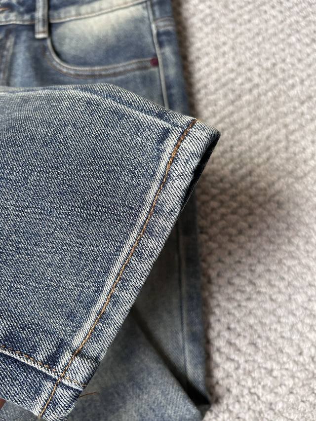 Amma. A super stylish pair of jeans, made with custom-made original washed denim fabric, featuring a unique design, top-quality craftsmanship with a logo pattern, and original hardware embellishments. An exceptionally high-end pair of jeans, with luxurious and exquisite materials and craftsmanship. They look great on and are very stylish. Recommended sizes: 29-38 (excluding 35); 37