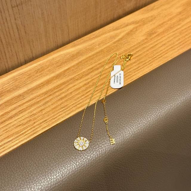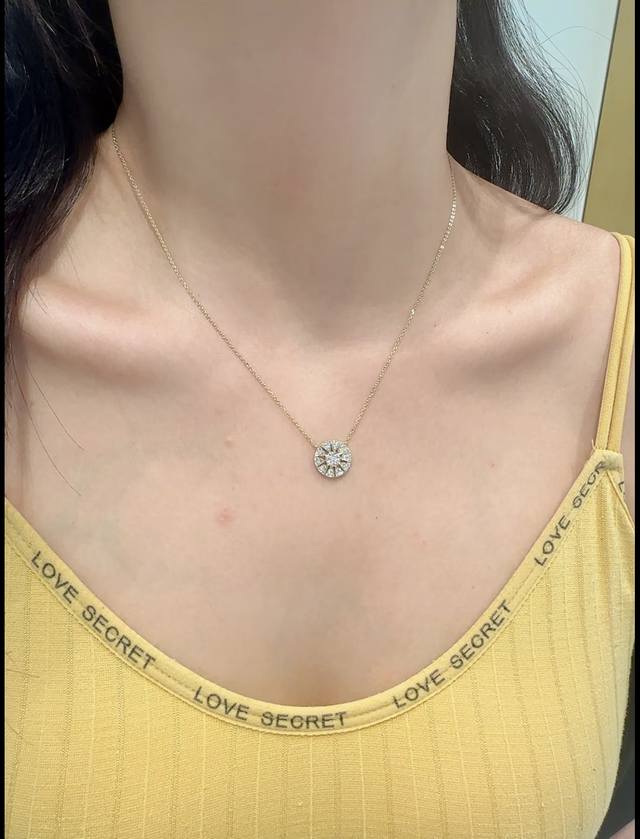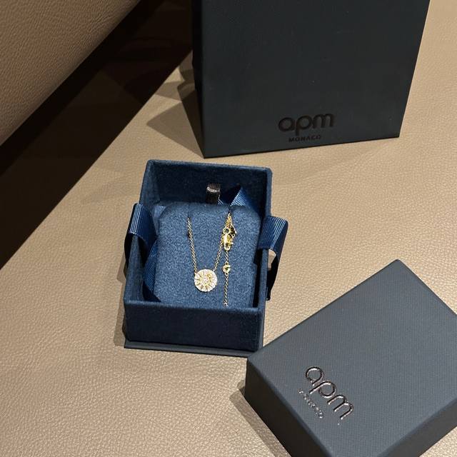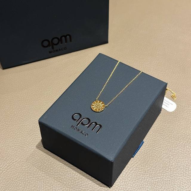 Apm's gold sun and star disc necklace is exquisite and versatile. The gold sun and star disc are pav