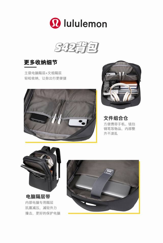 Applicable in all scenarios, looks great on both men and women! Lululemon's latest 2025 commuter multifunctional backpack, with many pockets and large-capacity business-style backpack! A must-have multifunctional backpack, with a capacity comparable to a suitcase, men can look gentlemanly when wearing it, and women can look explosive when wearing it, which really shows their temperament! This time, what you buy is definitely better than you imagined!