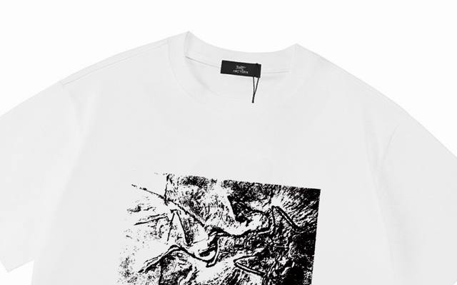 Arc Teryx 2026 New Petrochemical Skeleton Bird Print Logo Unisex Short-Sleeve T-Shirt, Custom 300g 100% Double Yarn Pure Cotton Fabric, Custom Dyed 32-Count Double-Strand Ribbed Fabric, Complete with Neck Label, Hang Tag, and Main Label, Color: White, Sizes: Xs, S, M, L