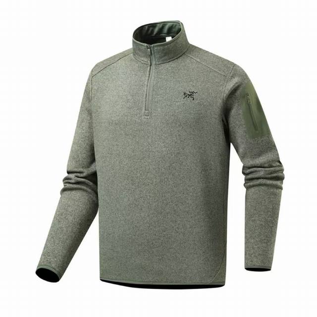 Arc'teryx 2025 Autumn New Outdoor Sports Warm Stand-up Collar Fleece Jacket, Can be layered under a Patak lightweight fleece jacket. Features a wave-textured texture for autumn and winter outdoor wear. Half-zip design for layering. Key Selling Points: Self-heating fleece, a new level of warmth. Made with advanced self-heating fleece fabric, it quickly absorbs and stores body heat, creating a warm microcirculation, like a personal heater, providing continuous warmth. Even in cold outdoor environments, it easily resists low temperatures, keeping you at a comfortable body temperature. Whether hiking, camping, or commuting, it's your most reliable warmth companion. Colors: Black, Gray, Night Shadow Blue, Van Green, Vast Gray, Glacier Gray, Mist Green. Specifications: L-4XL. 20835-1-25618