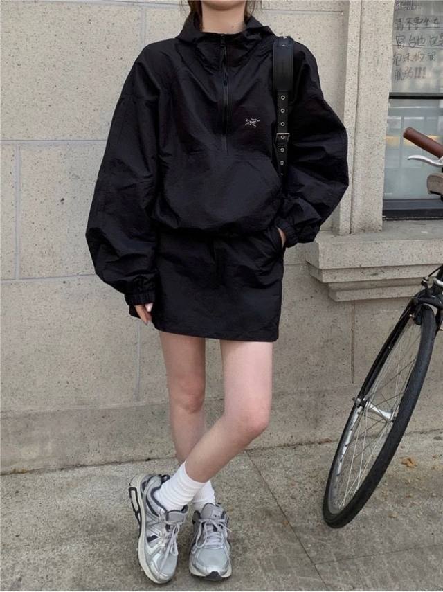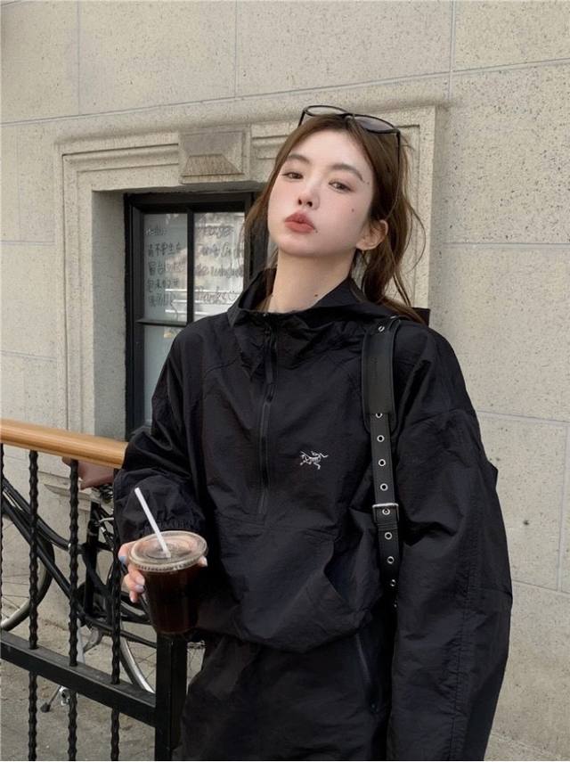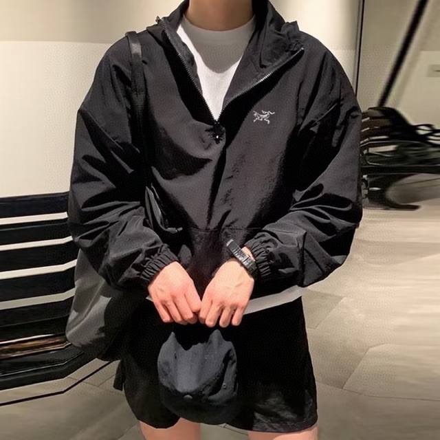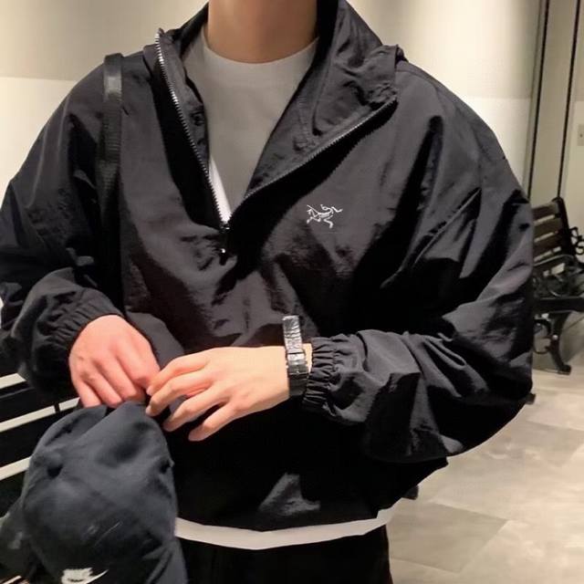 Arc'teryx Arc'teryx Half-zip Sun Protection Jacket Jacket Thin Wrinkled Fabric Hooded Sports Zipper Function Drop Shoulder Jacket Couple Style