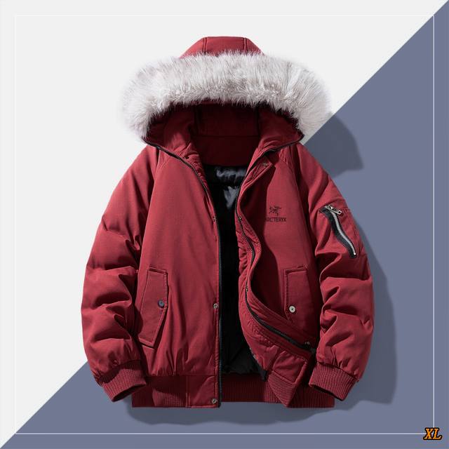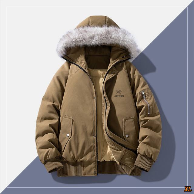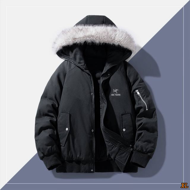 Arc'Teryx Exclusive New Arrival: High-Quality Winter Cotton-Padded Jacket, Casual, Loose-Fitting, Versatile, Couple Style, Hooded, Solid Color, Warm, Thick, Fur-Collar Cotton-Padded Coat. This season's main item, ample stock, highly recommended, high-end quality, classic design, excellent workmanship, classic and versatile, excellent fit.