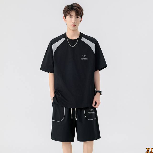 Arc'Teryx Exclusive New Summer Arrival: High-Quality Color-Blocked Striped Short-Sleeve T-Shirt and Shorts, 3A Antibacterial, Trendy, Loose-Fitting, Casual, Versatile, Short-Sleeve T-Shirt Top and Sports Set. This season's main product, ample stock, highly recommended, high-end quality, classic design, excellent workmanship, classic and versatile, excellent fit.
