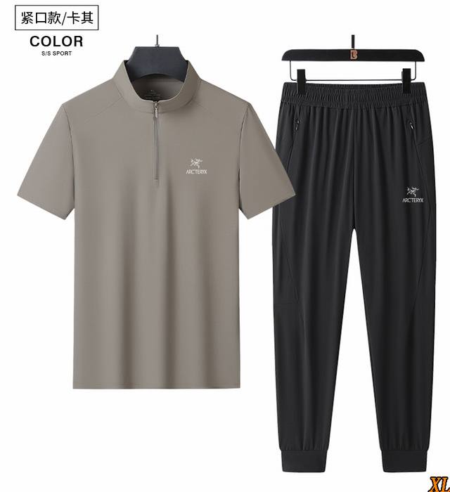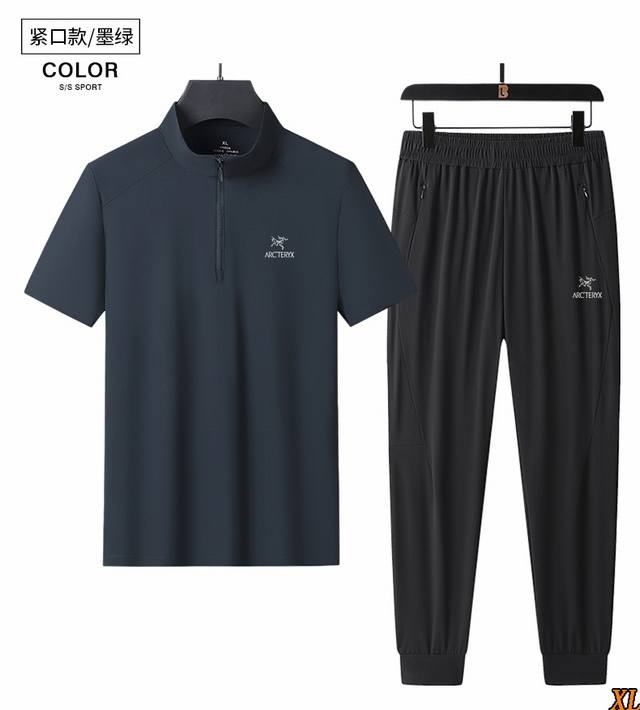 Arc'Teryx exclusive real shot of the new summer high-quality ice silk half-zip short-sleeved suit, thin breathable polo stretch cool ice silk suit casual sportswear two-piece suit, this season's main product, sufficient supply, rest assured to promote, high-end quality, classic design, excellent workmanship, classic and versatile, the upper body effect is excellent