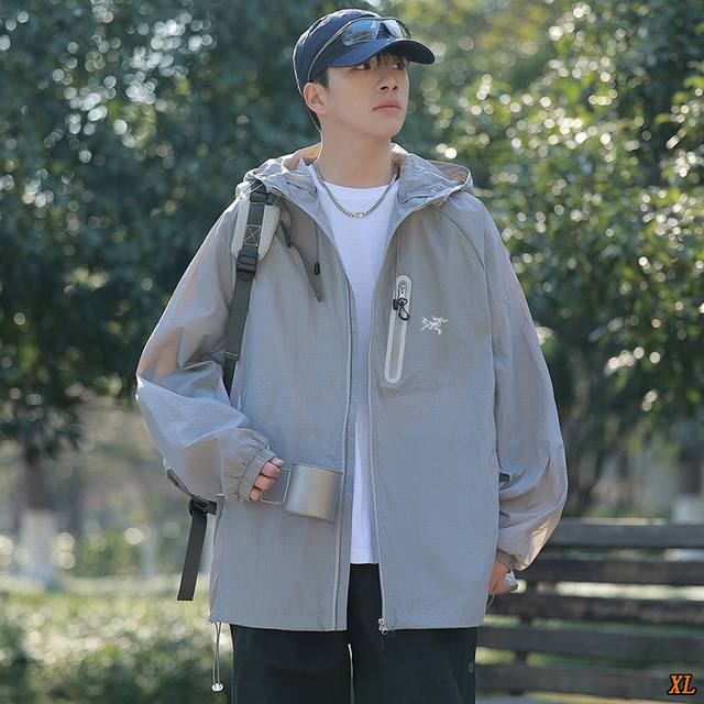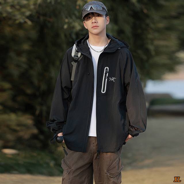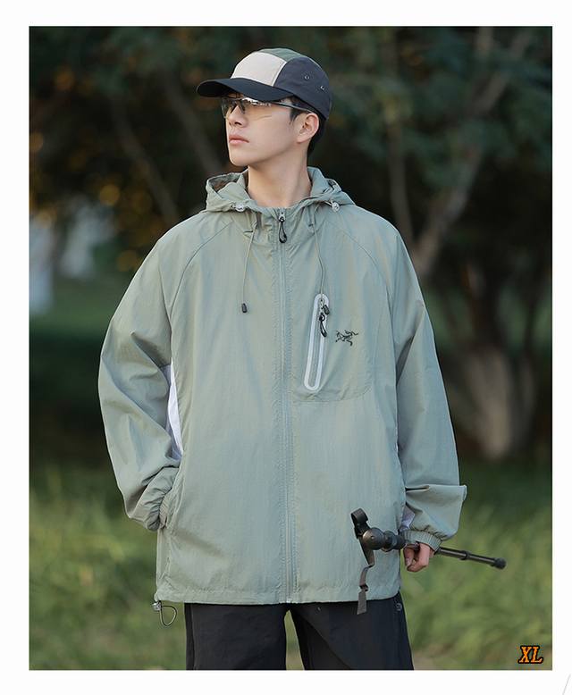 Arc'Teryx exclusive real shot of the new summer high-quality luminous zipper reflective strip thin anti-ultraviolet cardigan sun protection clothing summer Upf70+ couple sun protection clothing jacket, the main product of this season, sufficient supply, rest assured to promote, high-end quality, classic design , excellent workmanship, classic and versatile, excellent upper body effect