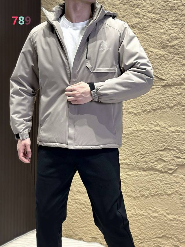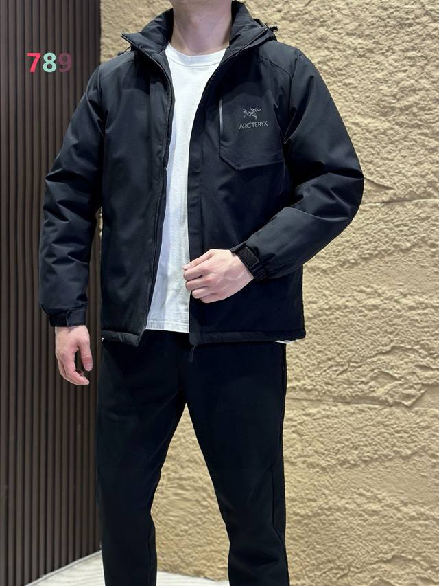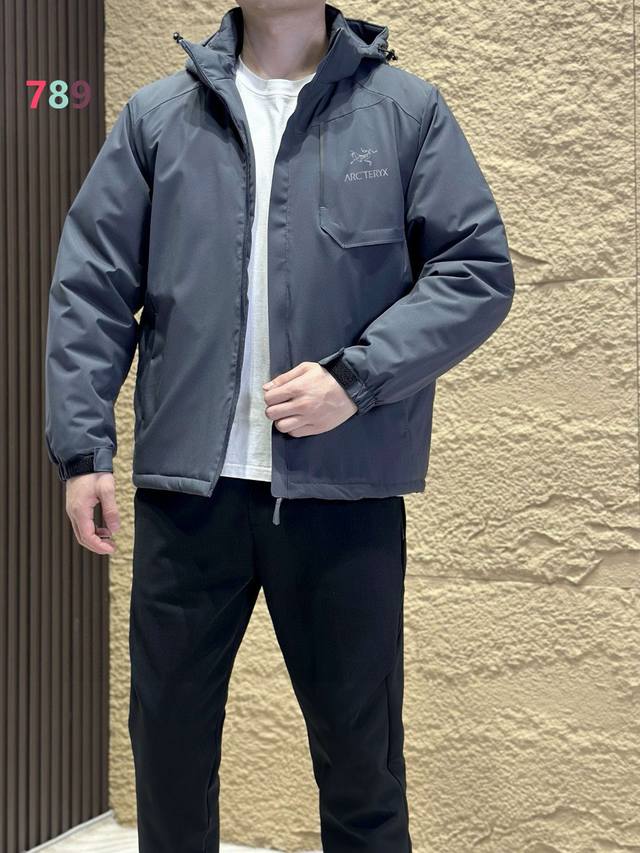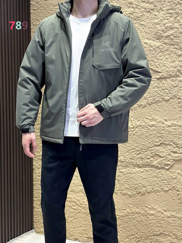 Arc'teryx Hooded Cotton-padded Jacket, made with thin cotton fabric and filled with Coreloft 100g thermal insulation, fills the gap in medium-thickness cotton-padded clothing for military use. It is fully windproof, provides excellent warmth, and is lightweight and comfortable to wear. It is generally used as an outer layer, layered with other mid-layers and underwear. Features: 1. The outer Windstopper fabric is fully windproof and offers some water, dew, and snow repellency, with a balance of softness and durability. The Coreloft filling material has excellent warmth-to-weight ratio and thermal insulation efficiency, and is easily compressible. It also has excellent water repellency. 2. The internal waistband features a vertical zipper design to maximize protection against snagging and abrasion on the hood and waist belt. 3. The shoulders and arms have a three-dimensional cut for excellent mobility. 4. There is one zippered chest pocket inside and two zippered hand pockets on the outside. Both sides also have zippered shoulder pockets, allowing for storage in the arm pockets. Ddd In Stock Available. Colors: Black, Dark Gray, Army Green, Khaki.