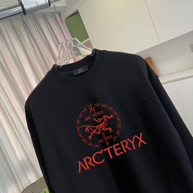 Arc'teryx Little Bird * 2025 Autumn/Winter New Style Personalized Logo Print Custom Fabric 400G Crew Neck Sweatshirt Unisex Sizes: SML XL Colors: Black White
