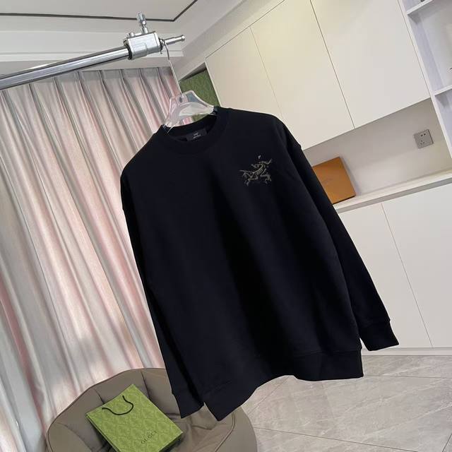 Arc'teryx Little Bird * 2025 Autumn/Winter New Style Personalized Logo Print Custom Fabric 400G Crew Neck Sweatshirt Unisex Sizes: SML XL Colors: Black White