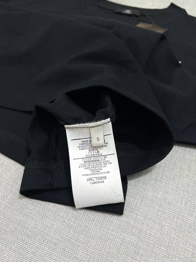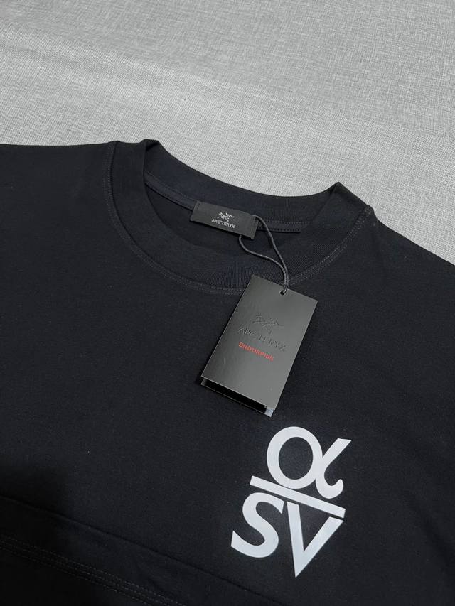 Arc'teryx New Arrival: Alpha Sv Crew Neck Printed Short-Sleeve T-Shirt, Official & D&D Synchronized; Details match the official version, with strict control over label size, precise inkjet printing details, and accurate ink dot positioning. Unique, attractive, and highly recognizable design. Made with 240g double-yarn 100% pure cotton fabric, imported machine-woven ribbed yarn, and a neckline with sturdy construction to prevent deformation. High-temperature washing at the factory ensures no fading or deformation. The fabric is soft, breathable, and shrink-resistant. All three labels are included. Excellent fit and European sizing. Colors: Black, White; Sizes: Xs-L,