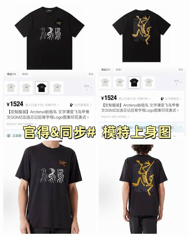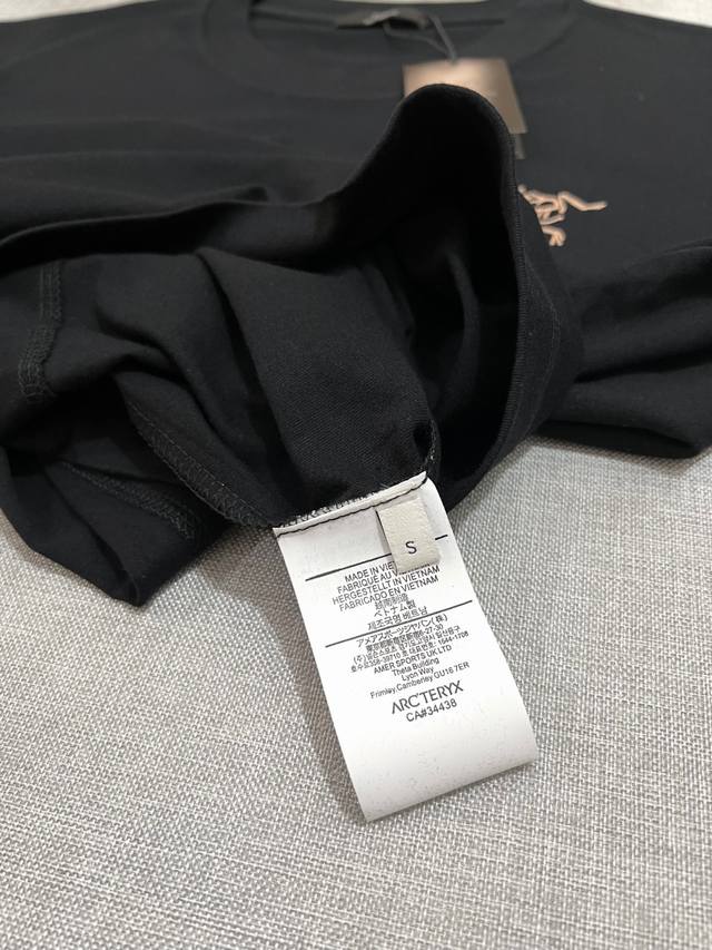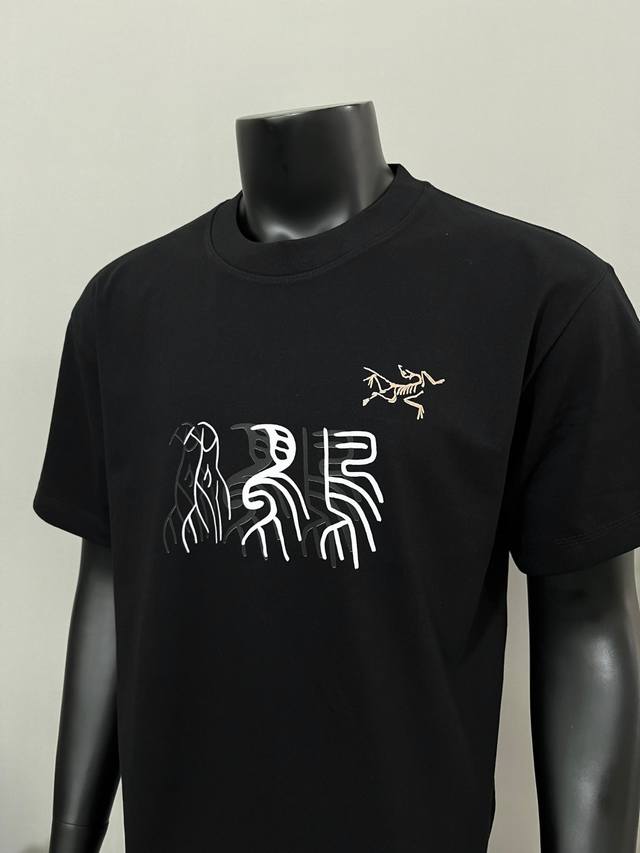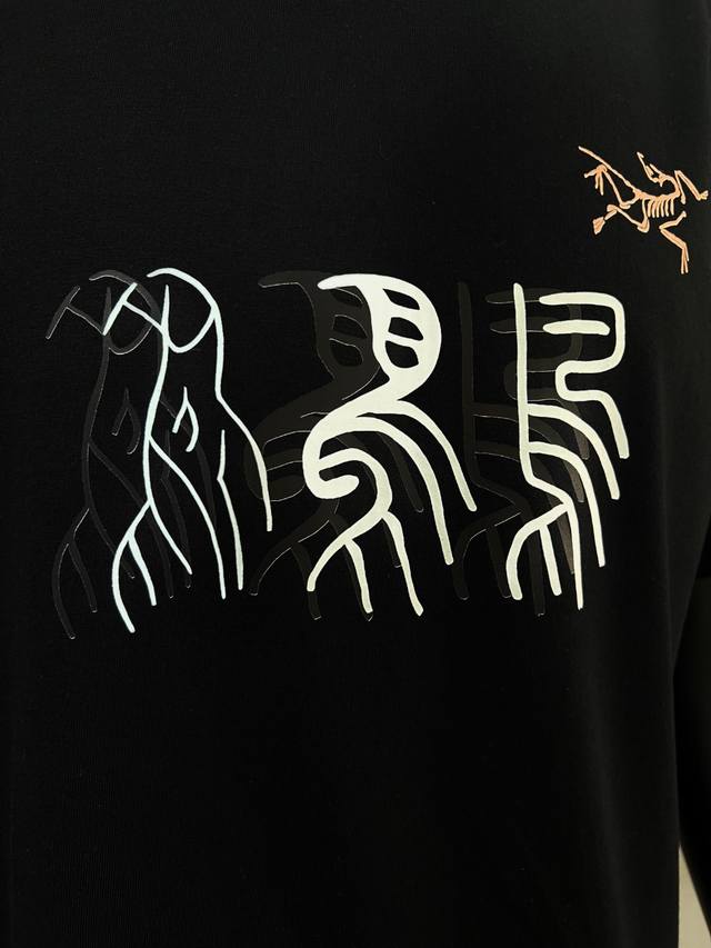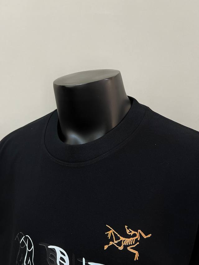 Arc'teryx New Arrival: American-style short-sleeved T-shirt with official and imported double-layered lettering, bird, oracle bone script, Ggmz, escape diary, and logo print on the back; details match the official version, with strict control over logo size, a unique and highly recognizable design, all details are consistent with the original. 1. "White version: Dark red double-layered oracle bone script with a black bird logo on the chest, black bird on the back" 2. "Black version: White and black double-layered oracle bone script with an orange bird logo on the chest, yellow bird on the back," the level of detail is synchronized with the official version. Made of 240G double-yarn 100% pure cotton fabric, imported machine-woven ribbed yarn, neckline with strong seams to prevent deformation, high-temperature washing at the factory to prevent fading and deformation, soft and breathable fabric, no shrinkage, complete with tags, meticulous details, looks good on, European sizing, loose and comfortable fit, colors: black, white; sizes: Xs-L,