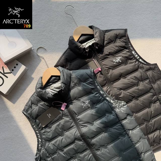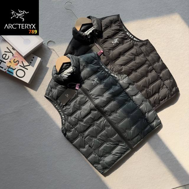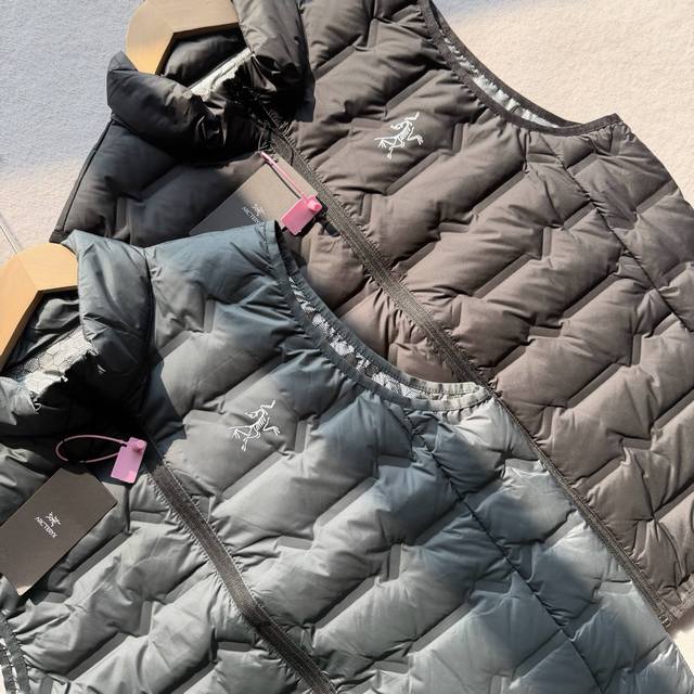 Arc'teryx New Men's Casual Stand Collar Down Vest! A classic and stylish design, made with custom-supplied ultralight down-filled technical fabric, 90% duck down filling, lightweight, fluffy, warm, and comfortable! 3D three-dimensional tailoring, with elastic fleece lining at the armpits and hem for greater flexibility and to meet the expansion needs during exercise! Features a small back pocket, a beautifully printed logo, and bound edges; the workmanship and details are impeccable. It looks fantastic on! Don't miss it! Colors: Black, Gray