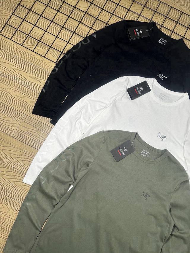 Arc'Teryx New Men's Early Autumn Cotton Long-Sleeve T-Shirt Base Layer. New autumn style, available in stores! The fabric is soft, delicate, smooth, and textured, offering excellent comfort and a wonderful feel. Most importantly, it's very skin-friendly, incredibly delicate and comfortable! Unbeatable breathability, perfect for sports! Features an embroidered Arc'Teryx logo on the chest and eco-friendly printed lettering on the sleeves that won't tear. An impeccably loose fit, perfect for wearing alone or as a base layer. The sporty style always has an irresistible charm; a loose, relaxed sweatshirt paired with casual sweatpants easily creates a stylish sporty look! A versatile style for everyday wear, sports, and shopping. Don't miss it if you find it anywhere! Colors: White, Black, Misty Green. Sizes: M-2XL. M: Arm length 86cm, Bust 102cm, Waist 86cm, Hips 108cm. L: Arm length 89cm, Bust 94cm, Waist 108cm, Hips 108cm. XL: Arm length 91cm, Bust 118cm, Waist 102cm, Hips 116cm. 2XL: Arm length 94cm, Bust 128cm, Waist 112cm, Hips 126cm.