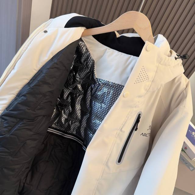 Arc'Teryx Overseas Exclusive Reflective Strip Cotton Jacket, New Winter Cotton-padded Outerwear DDD DDD The loose fit was determined after the designer tried on a batch of cardboard cutouts, allowing customers to wear it more freely. The cut is super flattering and the fit is excellent, with a crisp and textured look. It's waterproof and has outdoor functionality. All stitching is meticulous and not rough, giving it a high-end feel. Features include hand pockets, a bracket-style cut, seamless seam-sealed edges, and a waterproof outer layer made of imitation silk cotton with a multi-layered fiber structure and rectangular stitching. The filling is evenly distributed and won't clump after machine washing, making it as fluffy and lightweight as a down jacket. The inner lining features graphene self-heating technology, a heat-retaining feature, and a temperature-sensitive color-changing function that measures temperature in 15 seconds. Detailed images are available. The hood is equipped with windproof buckles. This cotton jacket reflects our meticulous craftsmanship. Look closely at every detail. This isn't about making money; it's about meeting those who truly appreciate it. Close your eyes and experience it for yourself. It's breathable, suitable for various environments, and allows for easy sweat wicking during running. The comfortable and lightweight fabric is resistant to fading and deformation, adding a touch of character to a simple garment without being overly complicated, ensuring a comfortable fit. Colors: Black, Beige.