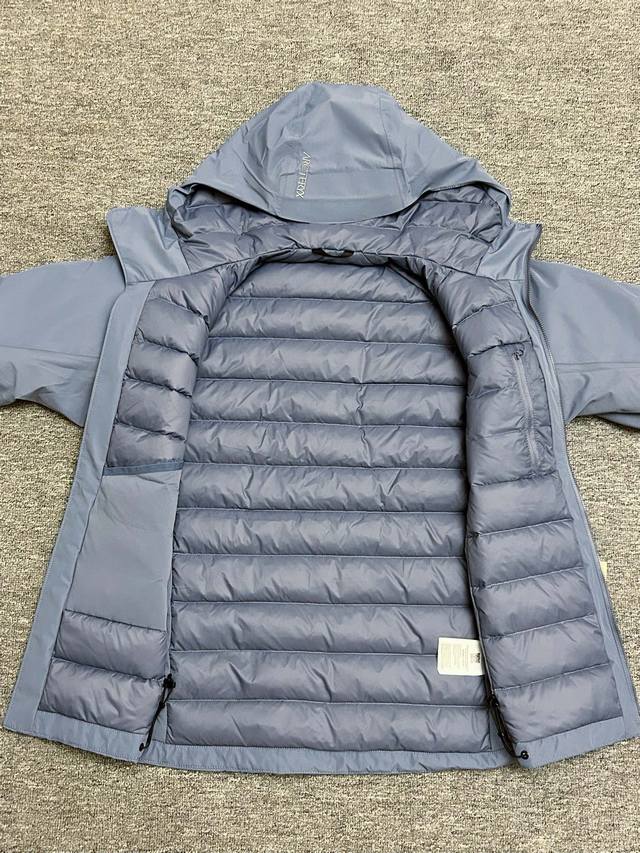 Top-Tier Version). Second batch samples available for comparison. Fabric + Features: Filled with 750 fill power goose down, providing excellent comfort even in the coldest weather. Breathable Gore-Tex fabric protects against wind, rain, and snow. Suitable for low temperatures, cold winds, and light snowfall. The hood locks in warmth, wind, and rain, allowing you to enjoy a full day outdoors. Sleeves are made of PFAs-free Gore-Tex fabric for weather protection. The lower back and underarms feature a lightweight stretch softshell for enhanced ventilation and breathability. 750 fill power grey goose down provides core warmth. The