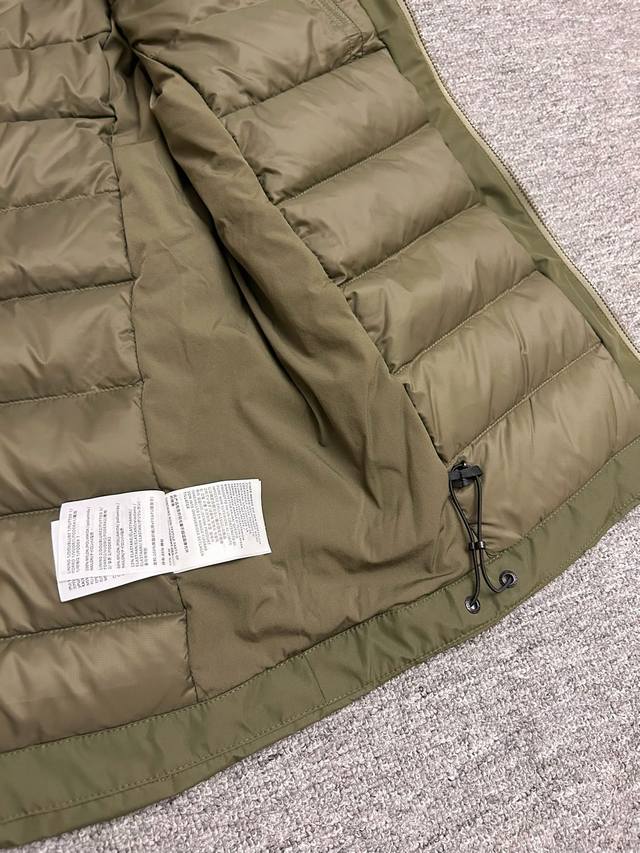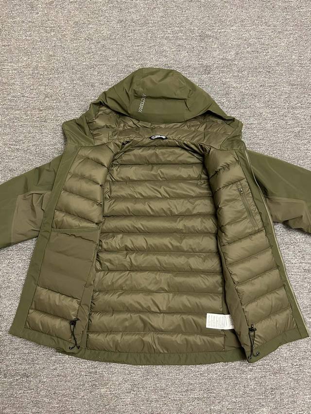 Top-Tier Version). Second-batch samples available for comparison. Fabric + Features: Filled with 750 fill power goose down, providing excellent comfort even in the coldest weather. Breathable Gore-Tex fabric protects against wind, rain, and snow. Suitable for low temperatures, cold winds, and light snowfall. The hood locks in warmth, wind, and rain, allowing you to enjoy a full day outdoors. Sleeves are made of PFAs-free Gore-Tex fabric for weather protection. The lower back and underarms feature a lightweight stretch softshell for enhanced ventilation and breathability. 750 fill power grey goose down provides core warmth. The
