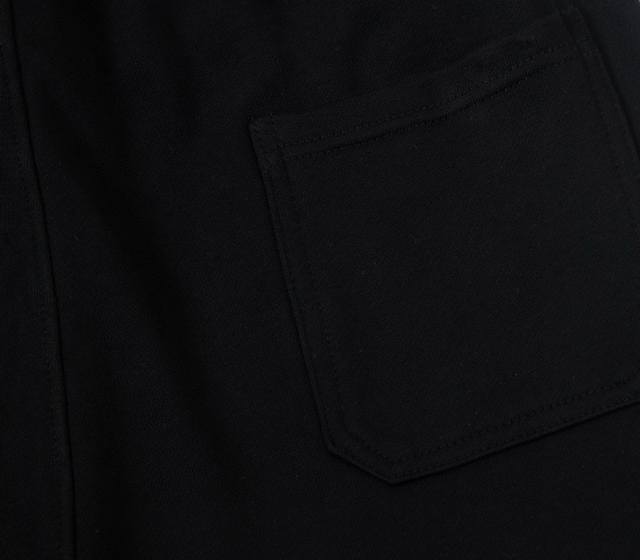 . Elastic Waist with Black and White Drawstring Design. Custom Drawstring Pockets. Slant Pockets on Both Sides. A Small Back Pocket.