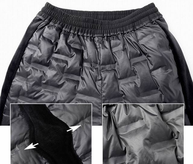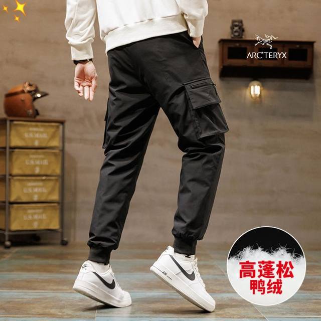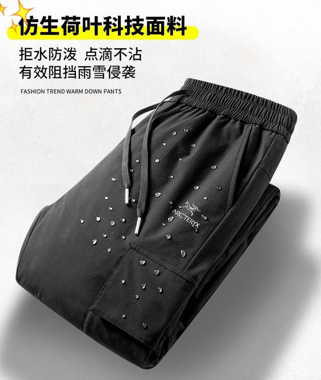 Arc'teryx Windproof Casual White Duck Down Pants - A must-have for staying warm! These high-end down pants are not only warm, but also have a fantastic design! Supplied by a top-tier manufacturer, quality control is excellent! The high-density custom fabric offers excellent windproof and water-repellent properties. Simple and versatile, perfect for outdoor sports and leisure! The custom-supplied fabric feels smooth, soft, and comfortable to the touch! Filled with duck down, the down filling is even and prevents any leakage! High-fill, high-loft duck down! Attention to detail is also excellent! The wide elastic waistband with drawstring design is universally flattering and looks good on all body types! The fitted cut is stylish and not bulky, giving a sharp and energetic look! It flatters the figure, making legs appear longer, and is easy to match with any outfit! It also provides excellent windproof and warmth protection! Color: Black Sizes: M-5XL