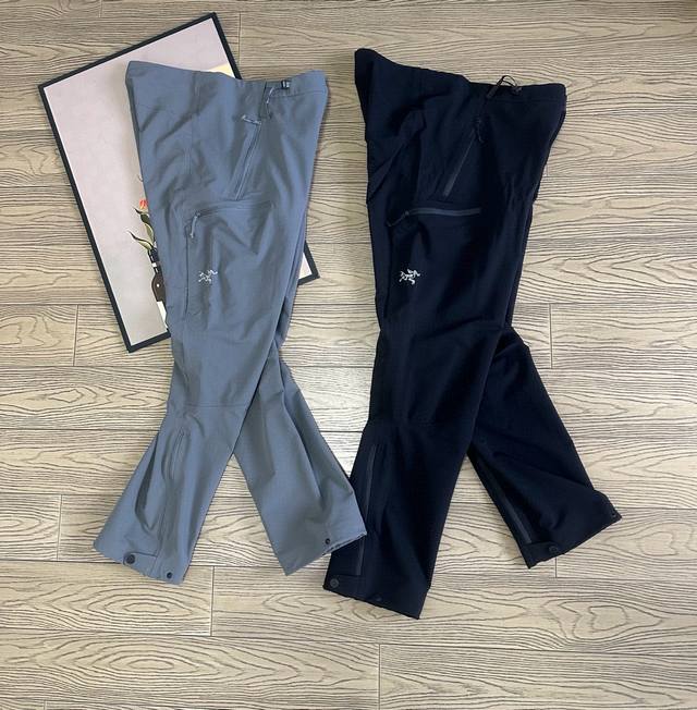 Arc'teryx's popular, premium, two-tone Gamma Guide pant. The windproof Arc'teryx Snowline collection returns with a new softshell pant. Featuring a laminated lining and custom-molded with a full set of trims for authentic fit, the Gamma Guide pant balances durability, stretch, and water repellency. The Gamma Guide pant meets the specific needs of alpine guides and professionals. Burly double-weave fabric in the thighs and hips provides durability, wind and rain protection. Wee Burly fabric in the back and calves provides added weight and breathability. Harness-compatible thigh pockets store notepads and electronic devices, and the zippered hem allows for slipping over boots. The streamlined silhouette and articulated cut ensure freedom of movement.