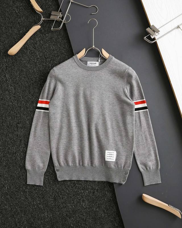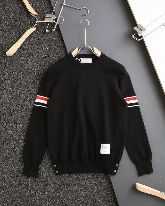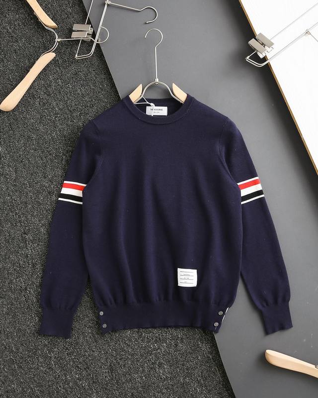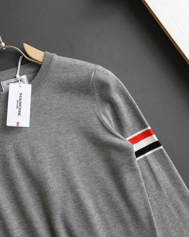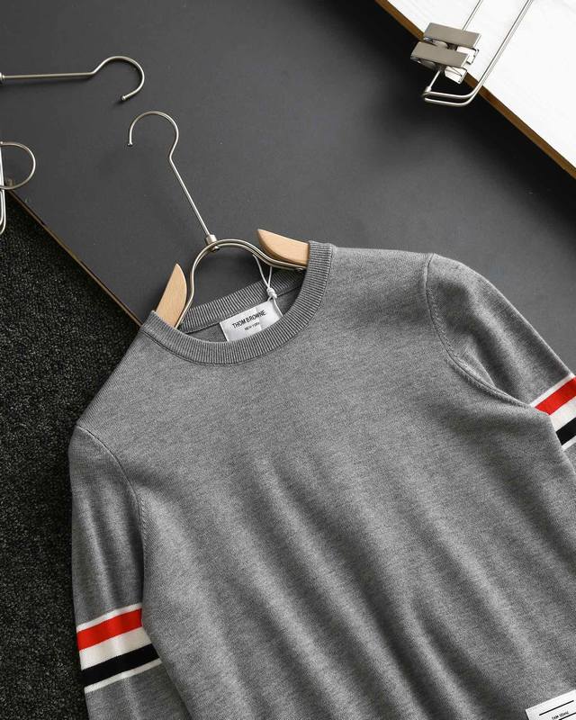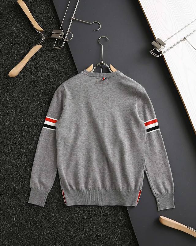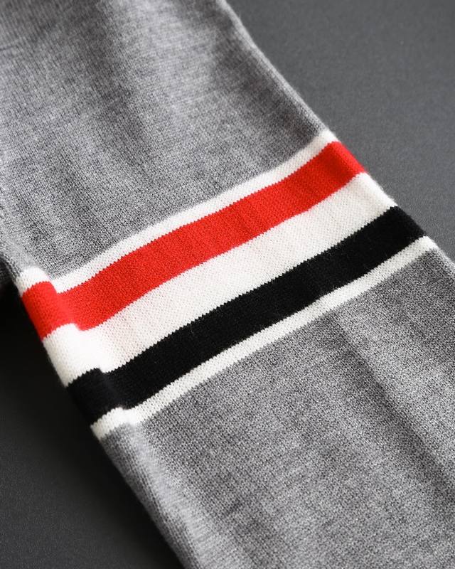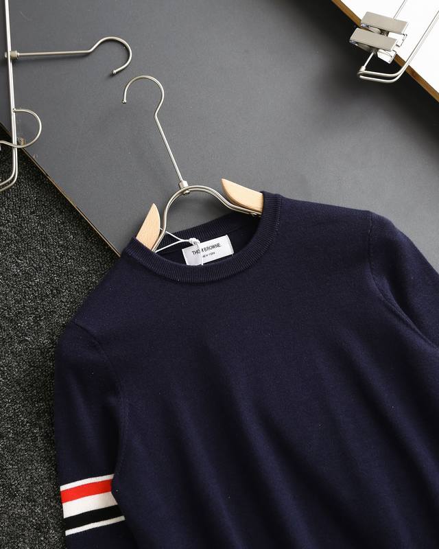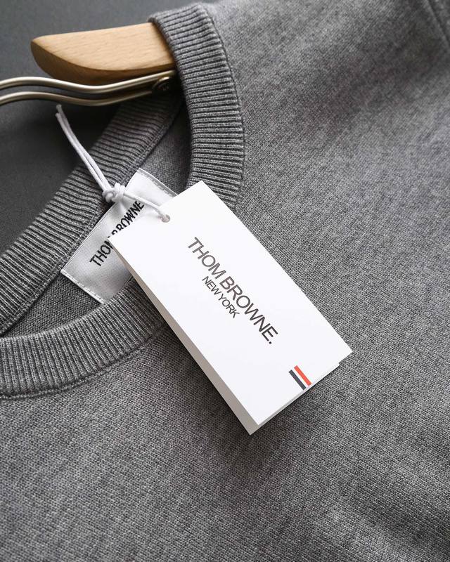 Thom Browne double-sleeve yarn-dyed striped crew neck wool sweater, sold simultaneously with