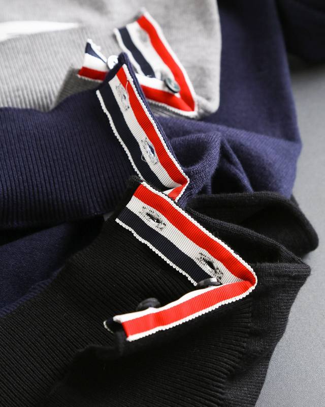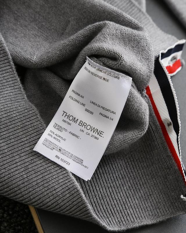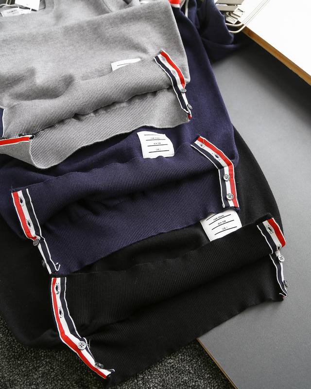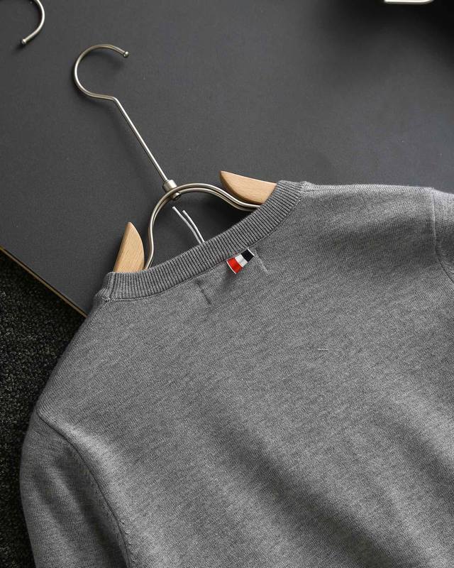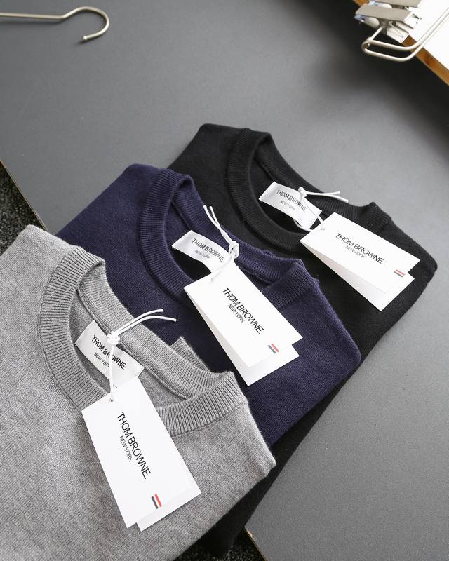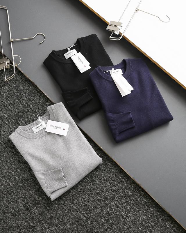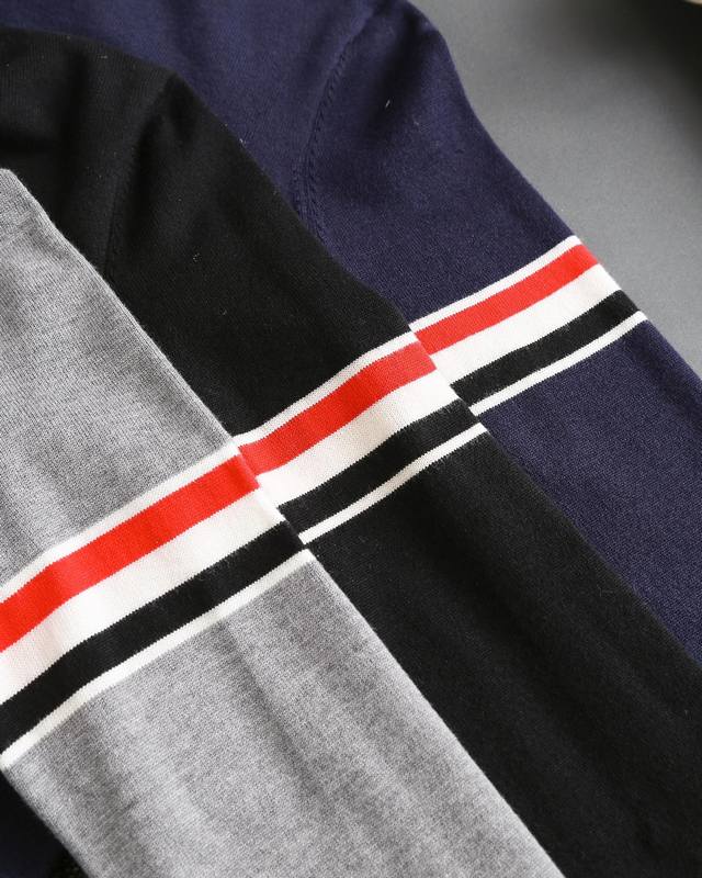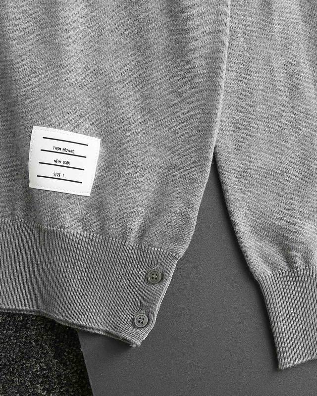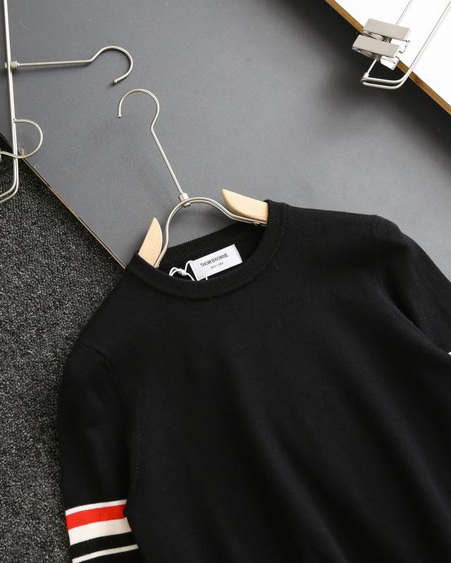 Thom Browne double-sleeve yarn-dyed striped crew neck wool sweater, sold simultaneously with