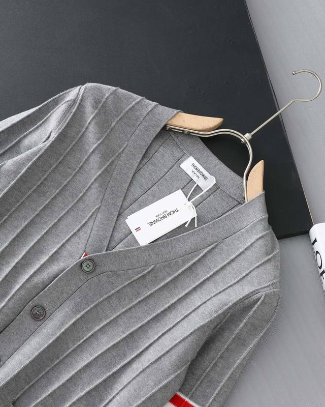 Thom Browne Double-Sleeve Yarn-Knit Striped V-Neck Wool Cardigan, sold simultaneously with