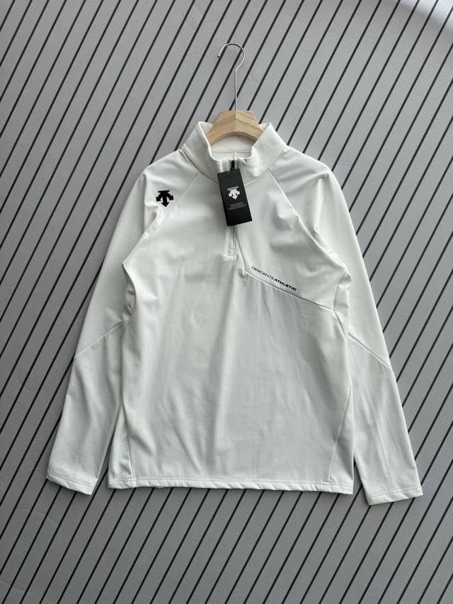 Autumn/Winter Descente Men's Training Stand-up Collar Warm Inner Layer Long-sleeved Knit Sweater. This Descente men's training stand-up collar warm inner layer knit sweater is a running series sports fitness half-zip knit pullover. It's a genuine product from a reliable source! It's directly supplied to physical stores! A truly high-quality product. Made with cool fleece fabric, it fits well without being tight, and is neither too loose nor too tight. The perfect balance of slimness and comfort, along with the scientifically designed three-dimensional cut, makes it suitable for all body types. Its robust and practical design is definitely worth your admiration! The small stand-up collar and half-zip pullover style make it easy to put on and take off while providing extra protection for the neck! It's especially suitable for outdoor activities in all seasons. The reinforced edges demonstrate the brand's identity and ensure durability. The attention to detail is truly impressive! This is a super popular item with an extremely high repurchase rate. The fabric is stretchy and skin-friendly, making it comfortable! It's slightly fitted; a larger size is available for a looser fit. Colors: Black, White. Sizes: M, L, XL, XL. Length, Chest, Shoulder Width, Sleeve (with raglan sleeves): M 70 108 76; L 72 112 77.5; XL 74 116 79; XL 76 120 80.5.