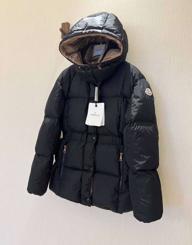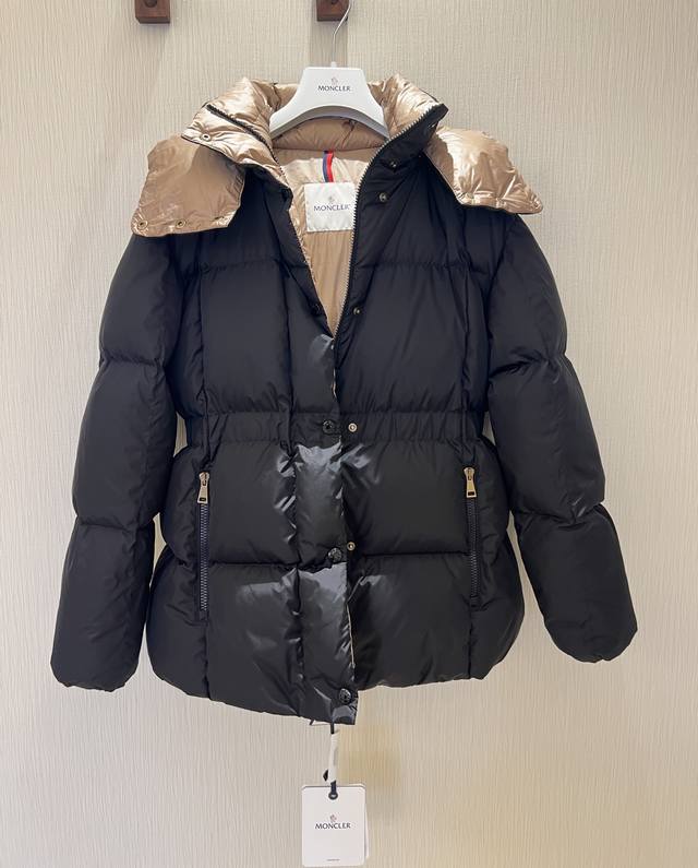 Autumn/Winter New Arrival: A color-blocked, down-filled down jacket with a detachable hood. The short silhouette is made of nylon fabric with a lustrous satin finish, and the cinched waist accentuates a feminine shape. It features two zippered pockets for a simple yet stylish look. Filled with fluffy white duck down, it's fashionable, warm, and versatile!