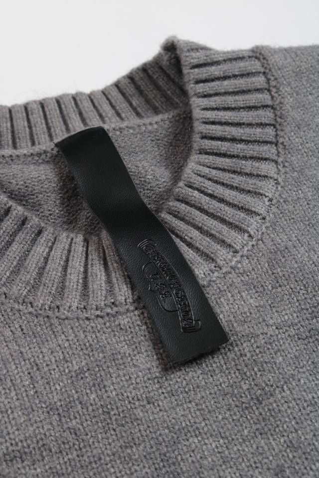 A pullover sweater that combines the warmth of wool with trendy style, featuring embroidered leather label and 3D inlay for a unique look. Comfortable and fashionable for autumn and winter, it's sure to turn heads!