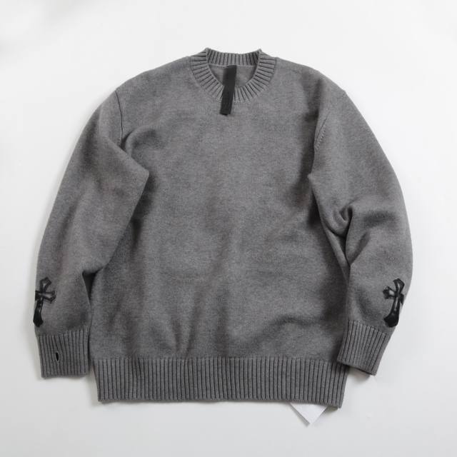 Autumn/Winter New Style Ch Unisex Pullover Sweater with Cross Embroidered Leathe