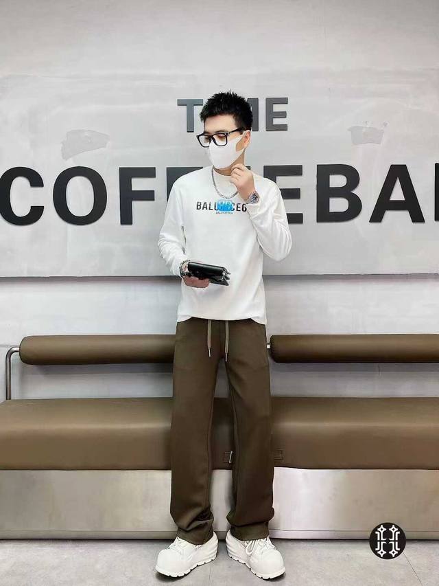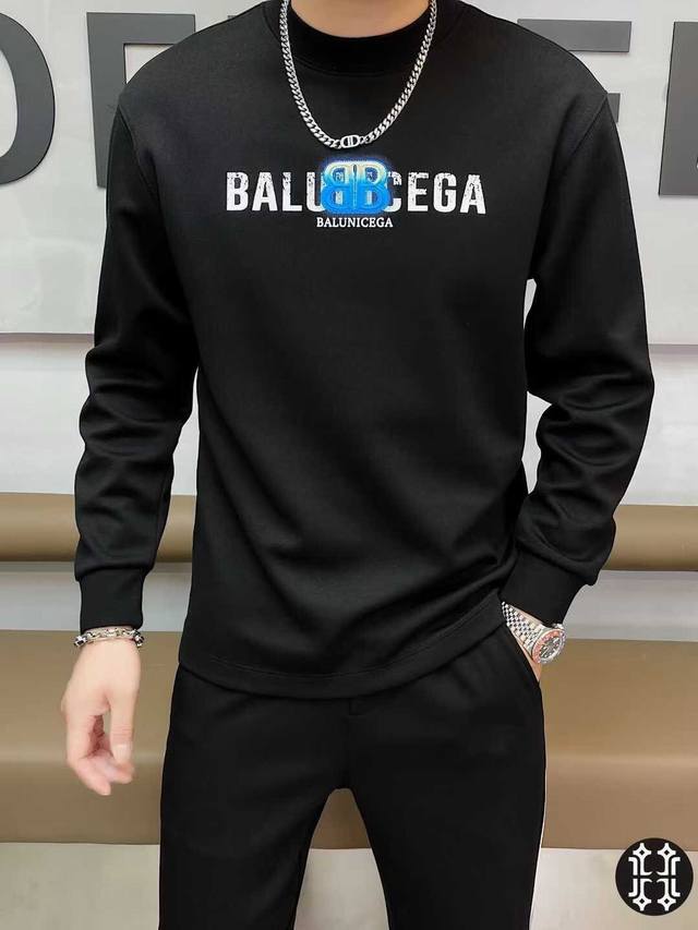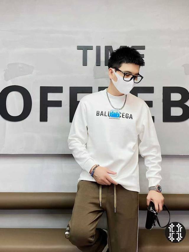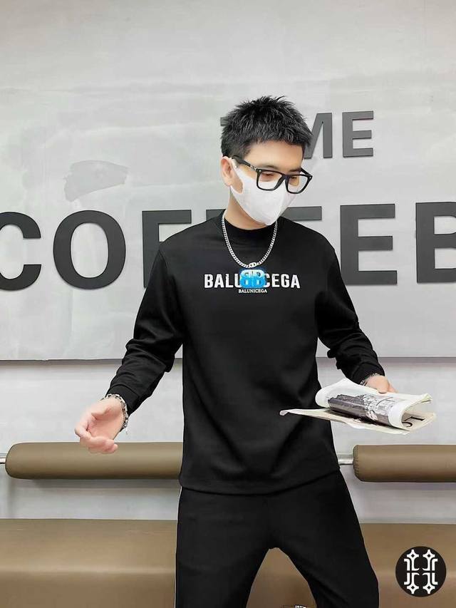Balenciaga 2025 Fall/Winter Men's Modal Pullover Sweatshirt. High-quality European import. A heavyweight must-have item, stylish and sophisticated for high-street mix-and-match, an eye-catching piece with unique brand craftsmanship and rich visual appeal. Made with Italian-supplied fabric, it boasts excellent drape, softness, warmth, and a lustrous sheen for a strong sense of texture. Italian slim fit, a versatile and fashionable piece for layering, giving men the most refined look. Sizes: M-3XL, suitable for men up to 195 lbs!