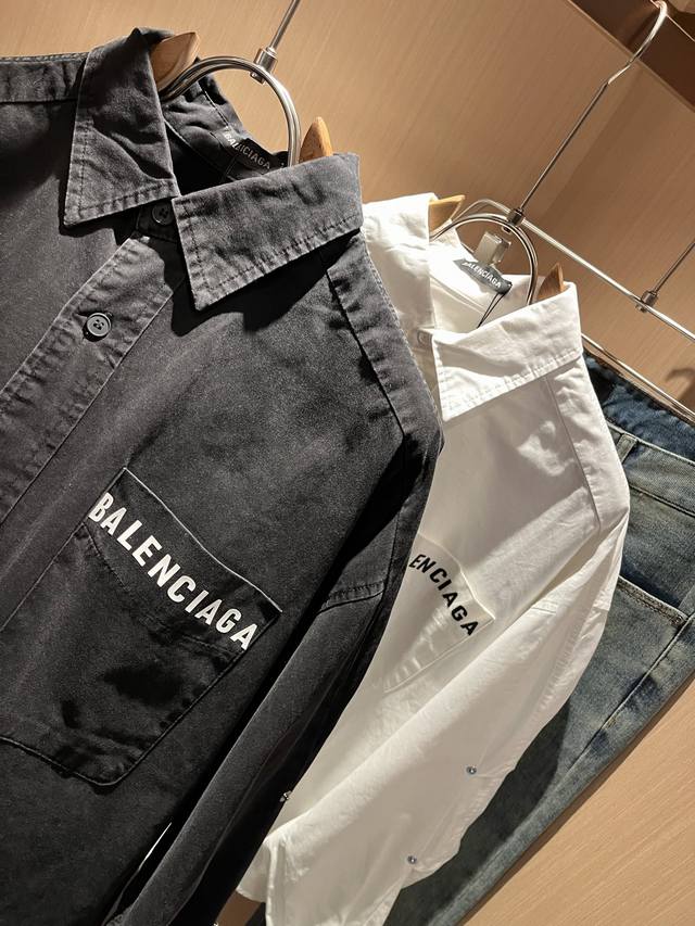 Balenci*Ga Paris* 2025 Autumn/Winter New Unisex Shirt, runway print, fashionable and casual shirt with logo pattern and heat-sealed design! Exquisitely designed, made from select premium poplin cotton fabric, soft and skin-friendly, with impeccable comfort and breathability. You'll absolutely love it in person! The loose, slightly dropped shoulder round neck cut, a gender-neutral style for couples, opening up a new era of fashion! Distinguished from other market versions, this is a high-end couture collection! Sizes: S-XL