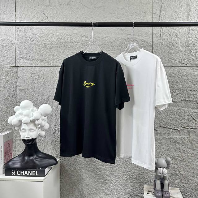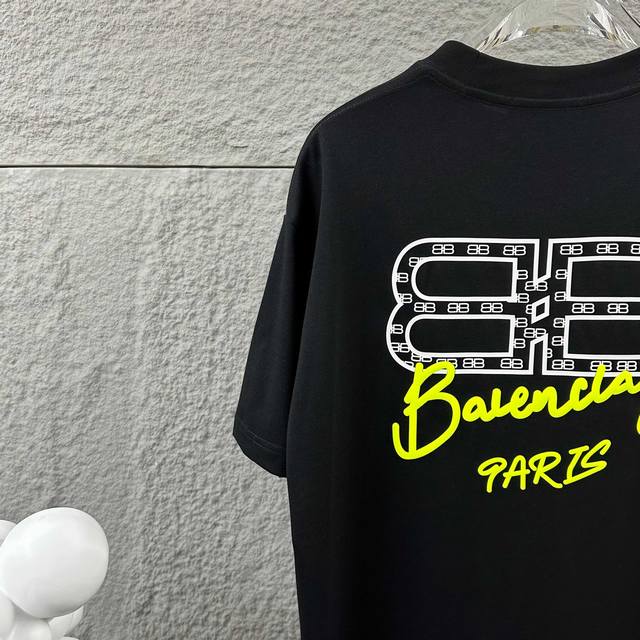 Balenci*Ga Paris 2025 Spring and Summer New Short-sleeved T-shirt Classic Letter Three-dimensional Foaming + Silicone Process Customized Double Yarn Plain Cotton Fabric Short-sleeved T-shirt Unisex