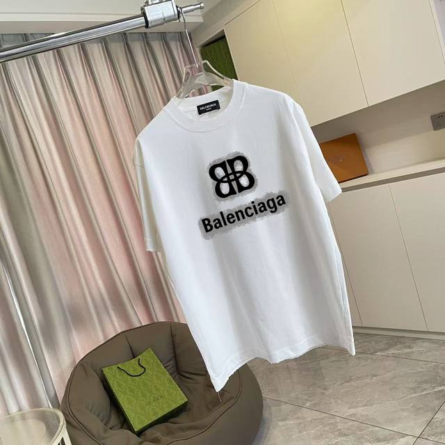 Balenci*Ga Paris 2026 Spring/Summer New Washed Distressed Ripped Personalized Letter Logo Print Custom Fabric 320G Short Sleeve T-Shirt Unisex Sizes: SML XL Colors: White, Brown, Purple, Gray