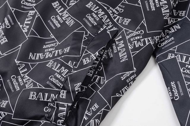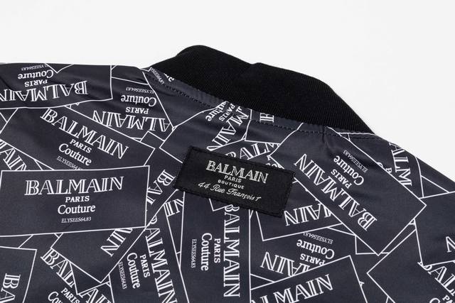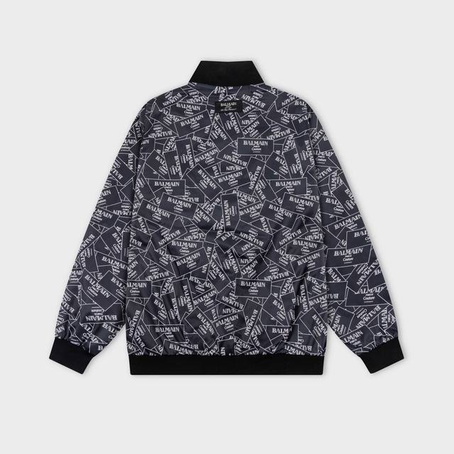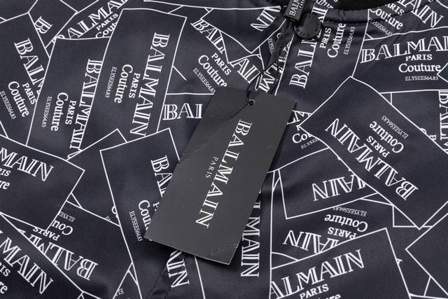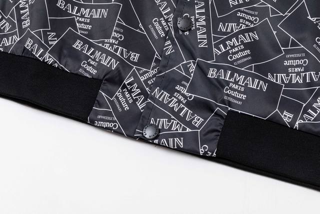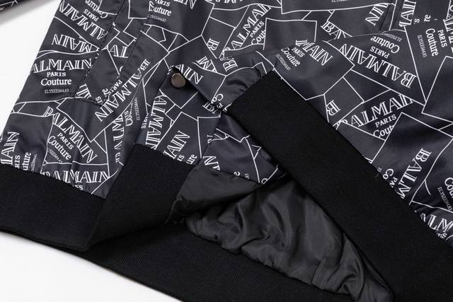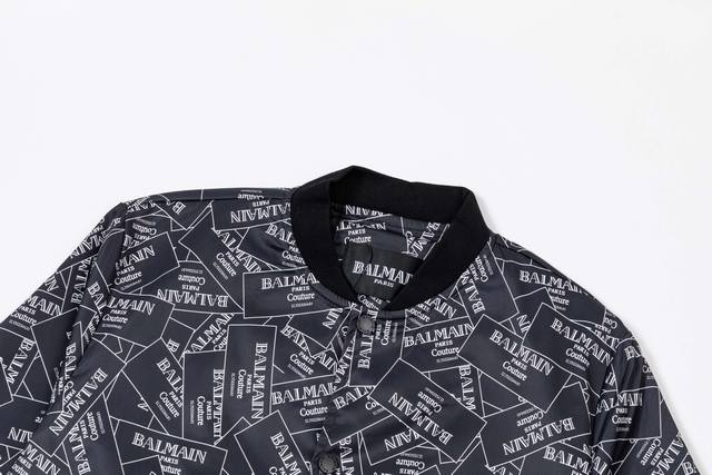 Balmain 2025 Autumn/Winter New Bomber Jacket, All-over Logo Print, Stylish and Elegant, Meticulous Workmanship, Neat Stitching, Excellent Fit, Original Custom-Made Hardware and Zippers. Sizes: M-3XL. Color: Black.
