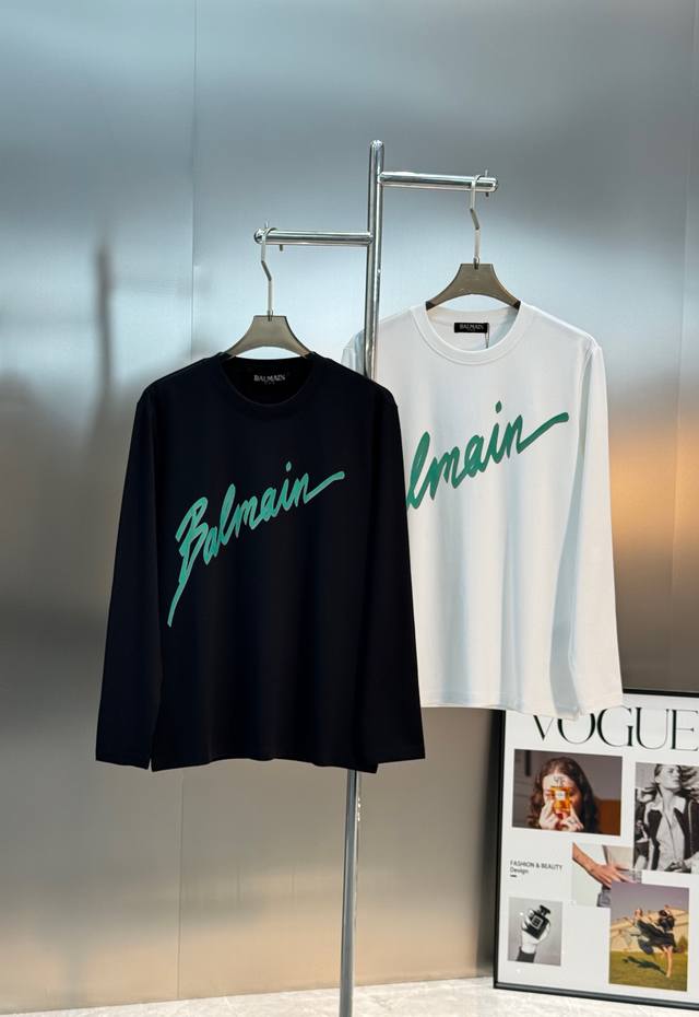 Balmain* 25S New Modal Long-Sleeve T-Shirt - A leading basic style. Features a classic 3D heat-pressed large letter graphic on the chest! High-temperature embossed green. Clean, refreshing, simple, and elegant. A versatile piece suitable for all ages. Recommended regular fit! A sophisticated style. Custom-made 300g Modal combed fabric, superior material, naturally high-end! The surface is smooth and skin-friendly, as comfortable as a baby's against the skin! Colors: Black, White. Sizes: M-3XL (slim fit). S and 4XL are available by custom order. For someone 175cm tall and weighing 140kg, L is recommended.