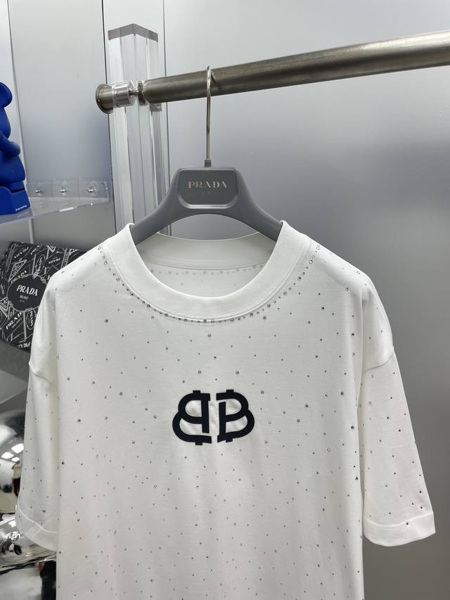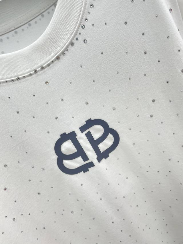 Bal*Paris 2025 Summer New Arrival Rhinestone Print Bb Logo Short-Sleeve Tee. Available in stores simultaneously. Original quality, high-end item. Fashionable imported original technical fabric, comfortable and breathable. Original custom hardware accessories. Stylish and handsome. All tags are complete. Recommended style, extremely high-end. Available in four colors and sizes: M-3XL.