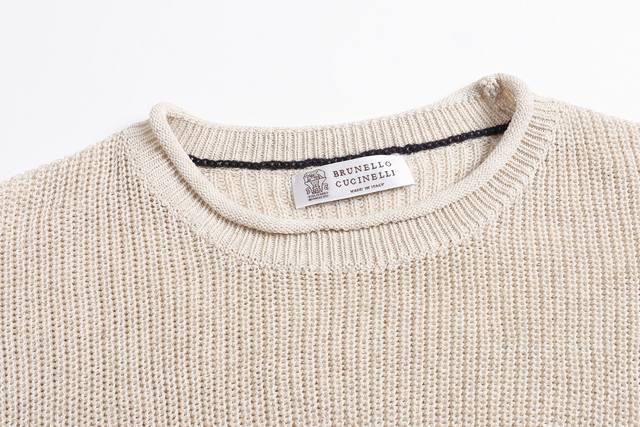 Bc Brunello Cucinelli solid color round neck ribbed cotton and linen knitted sho
