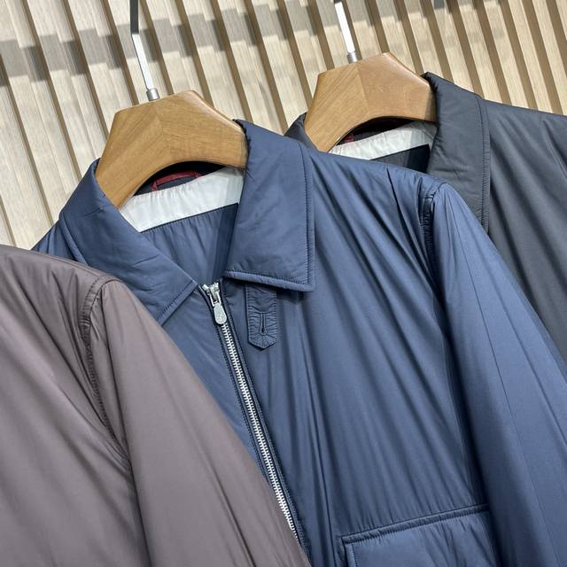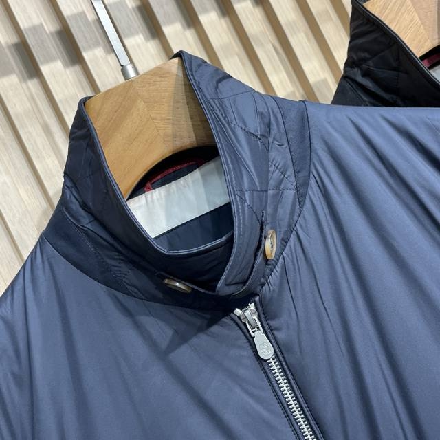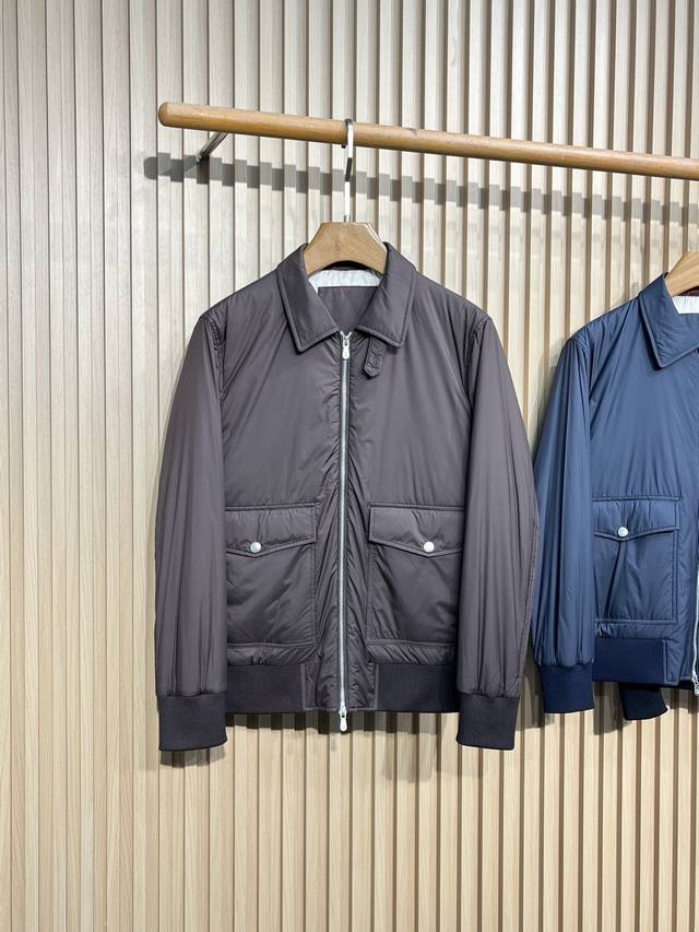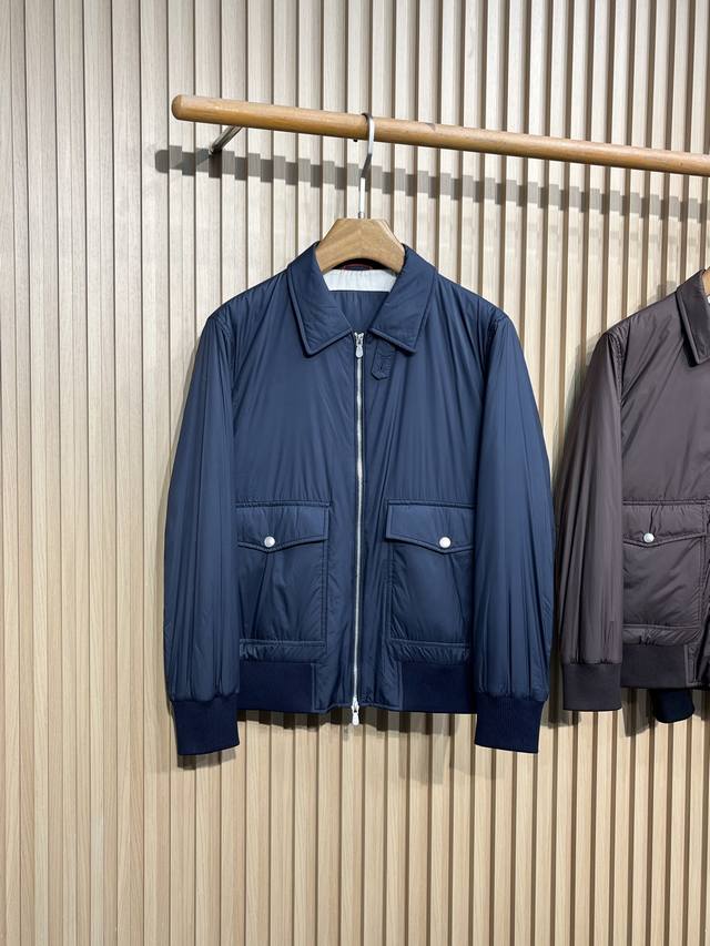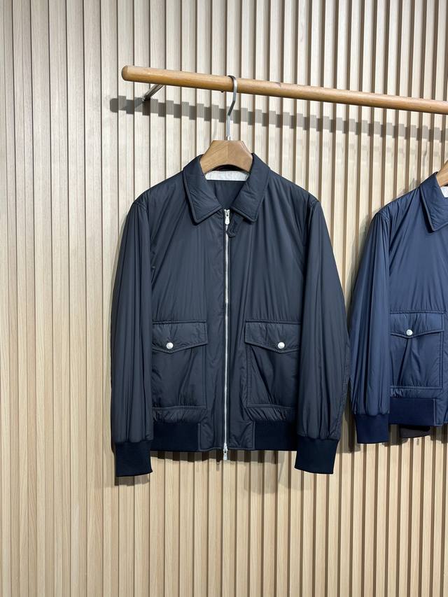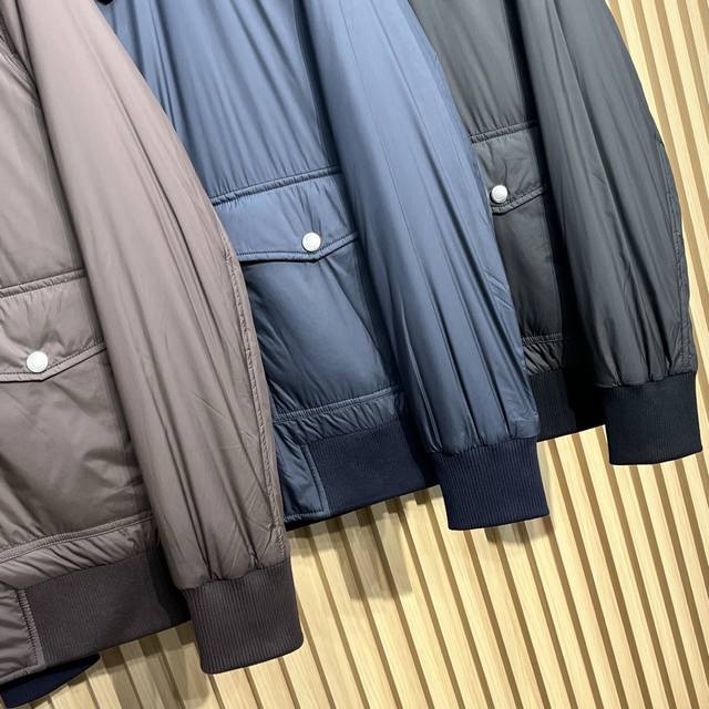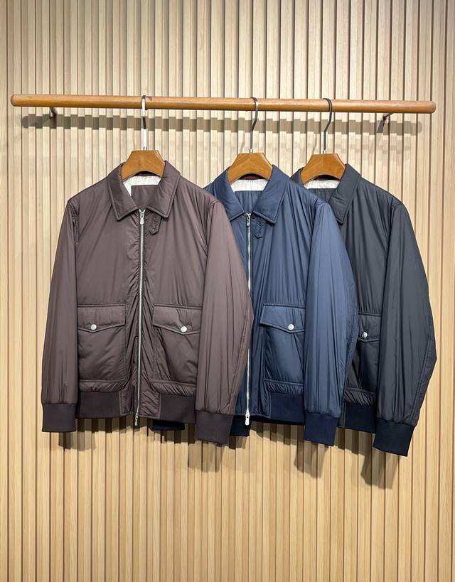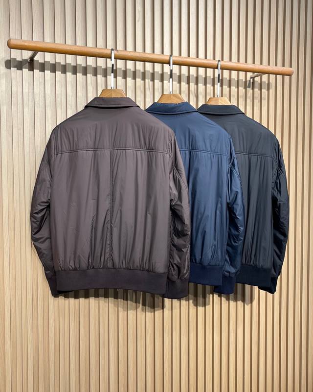 Bc25Fw Autumn/Winter New Tech Fiber Fabric Thin Cotton Collared Jacket! Rare Export Version, No Label! Men's Fashionable Two-Way Zipper Bomber Jacket! Rarely available from trading company channels, simultaneously released on the official website! A must-have jacket for high-end gentlemen, the ideal first choice for daily commuting in autumn and winter, perfectly showcasing the wearer's unique temperament and taste! This jacket uses a combination of custom-supplied cotton fibers and a small amount of synthetic fibers, giving the fabric a silk-like texture while being extremely durable and sturdy, making it an ideal choice for everyday protection! The slightly shiny texture enhances this season's colors and adds a touch of sophistication, while the cupro lining ensures a perfect wearing experience! The thin cotton filling inside provides a slight increase in warmth! This simple yet sophisticated jacket defines a sporty style with its slightly water-resistant gabardine fabric. The slightly structured yet lightweight material complements its casual and versatile aesthetic, while the zip-up closure and elasticated hem introduce classic bomber jacket details, elevating its timeless appeal. Colors: Brown, Navy, Black Sizes: M-3XL Size Reference: M: Shoulder 45cm, Chest 108cm, Sleeve Length 63cm, Length 66cm L: Shoulder 46cm, Chest 112cm, Sleeve Length 64cm, Length 67cm XL: Shoulder 47cm, Chest 116cm, Sleeve Length 65cm, Length 68cm XXL: Shoulder 48cm, Chest 120cm, Sleeve Length 66cm, Length 69cm 3XL: Shoulder 49cm, Chest 124cm, Sleeve Length 67cm, Length 70cm