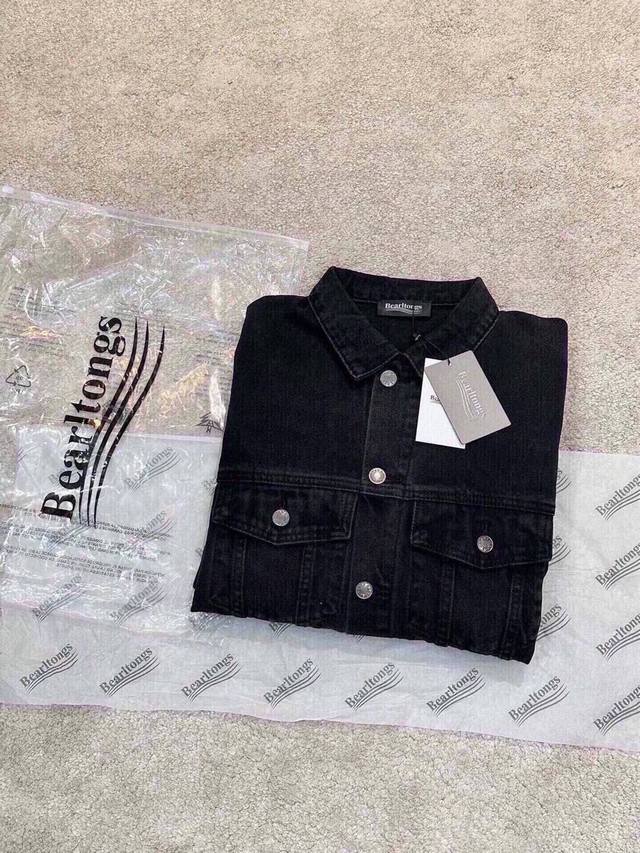 Bearltongs Glow-in-the-Dark Haute Couture Double B Graffiti Glow-in-the-Dark Retro Washed Denim Jacket, Justin Bieber's Style. The double B graffiti on the back exudes street art vibes during the day, and glows coolly at night! Very limited stock available in China, selling out instantly upon arrival. The overall color isn't pure black, but a vintage, distressed washed dark gray. The cut is also the Os style, beloved by trendsetters