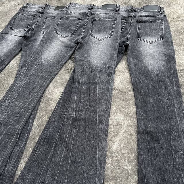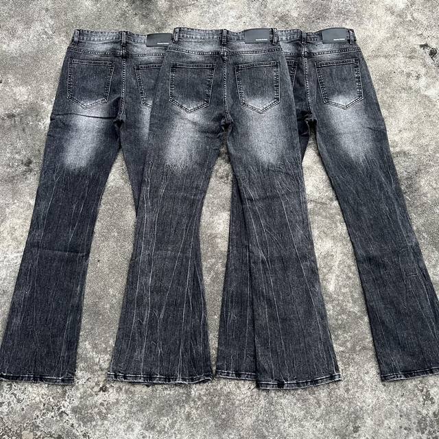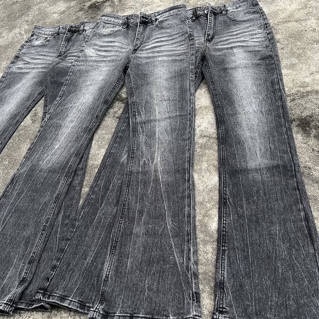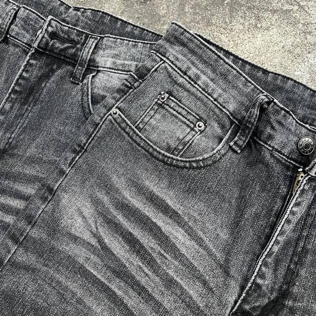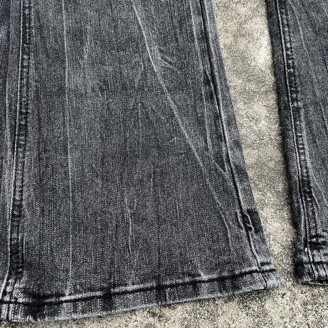 Dc retro black bamboo cotton faded lightning pattern washed distressed flared jeans